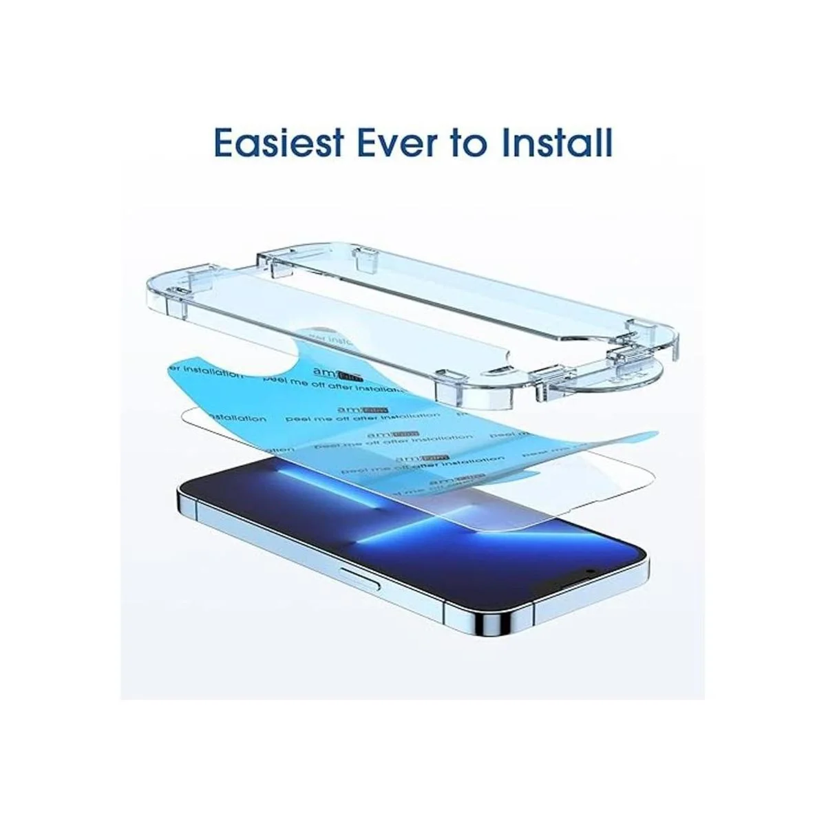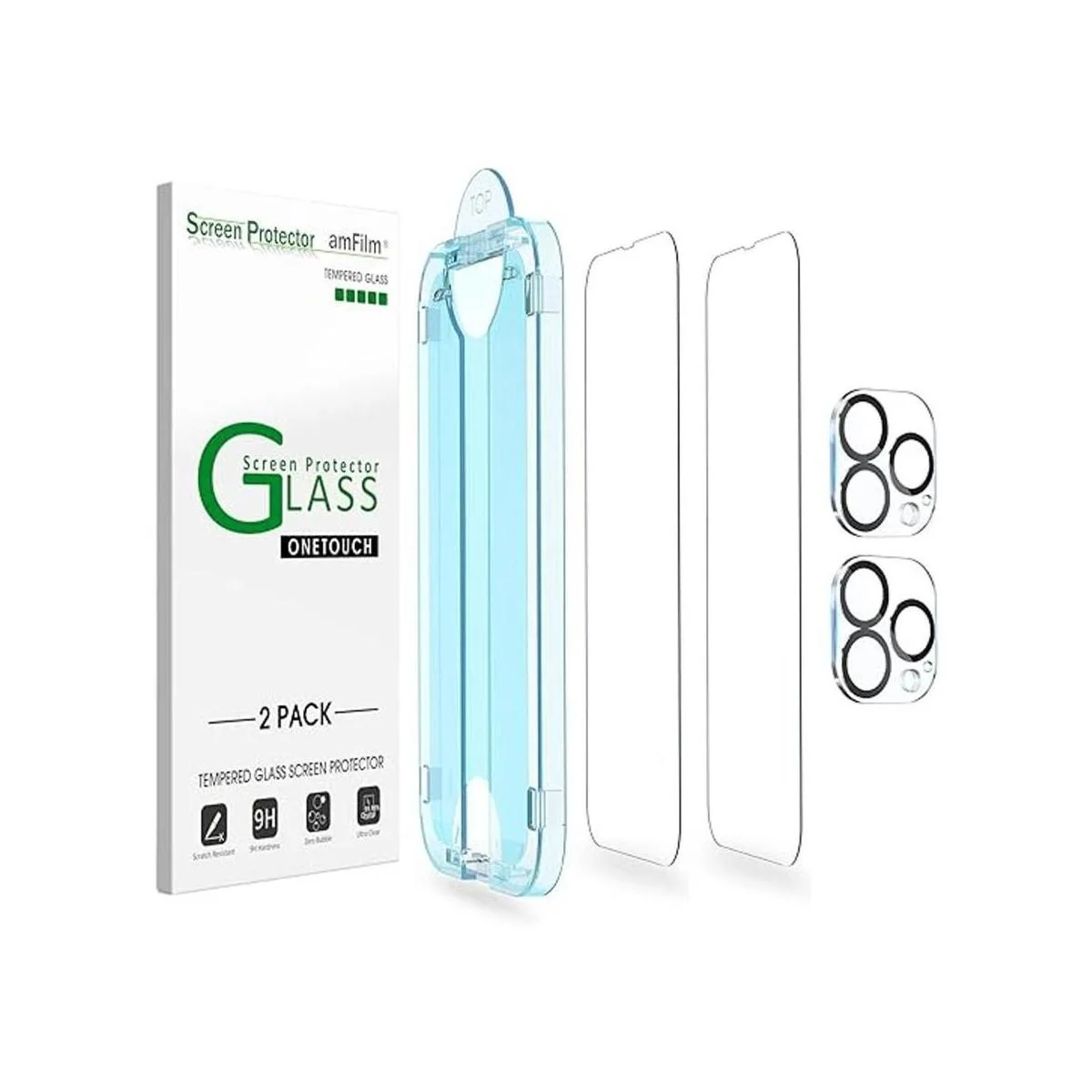amFilm OneTouch Protector de pantalla de vidrio templado compatible con iPhone 13 Pro Max 6.7 pulgadas, 2021 y protector de lente de cámara, cobertura completa de borde a borde con kit de fácil instalación paquete de 2 2