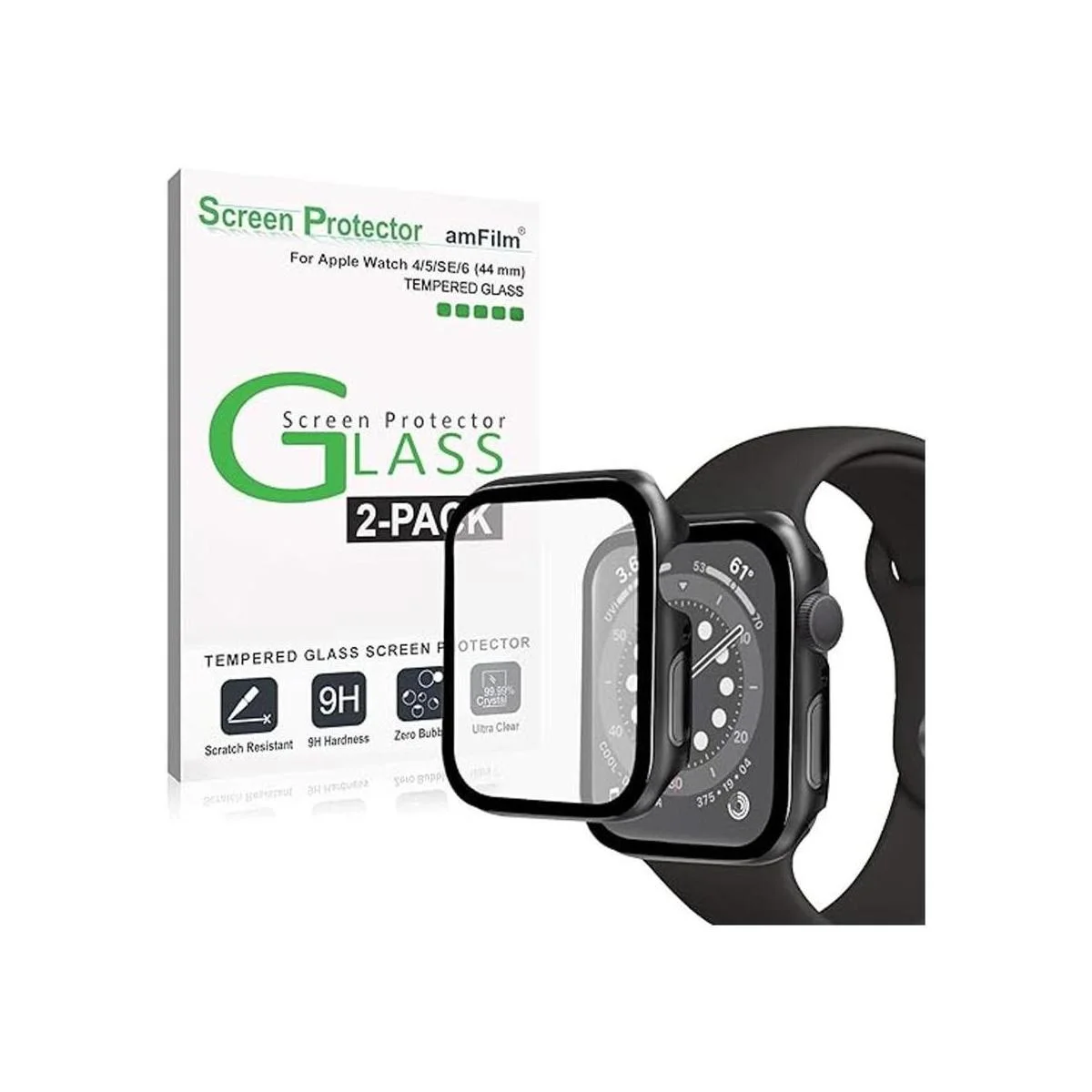 amFilm Paquete de 2 fundas con protector de pantalla de vidrio templado integrado compatible con Apple Watch Series SE26SE54 1.732 in