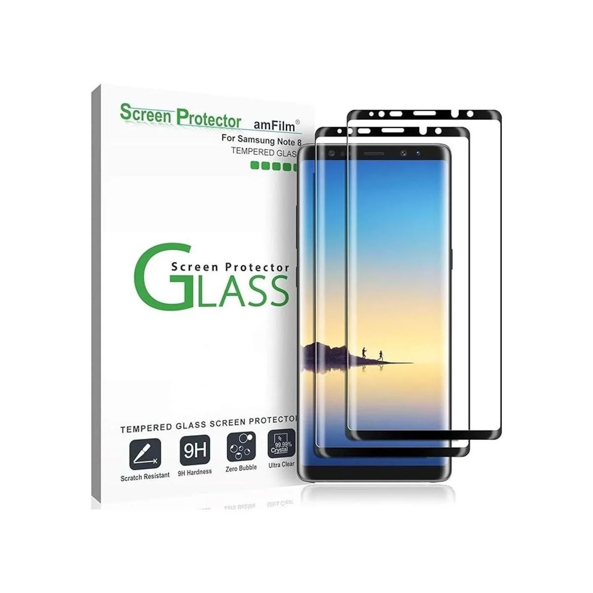 amFilm Paquete de 2 protectores de pantalla de vidrio para Samsung Galaxy Note 8, cobertura de pantalla completa, vidrio templado curvado 3D, matriz de puntos con bandeja de fácil instalación