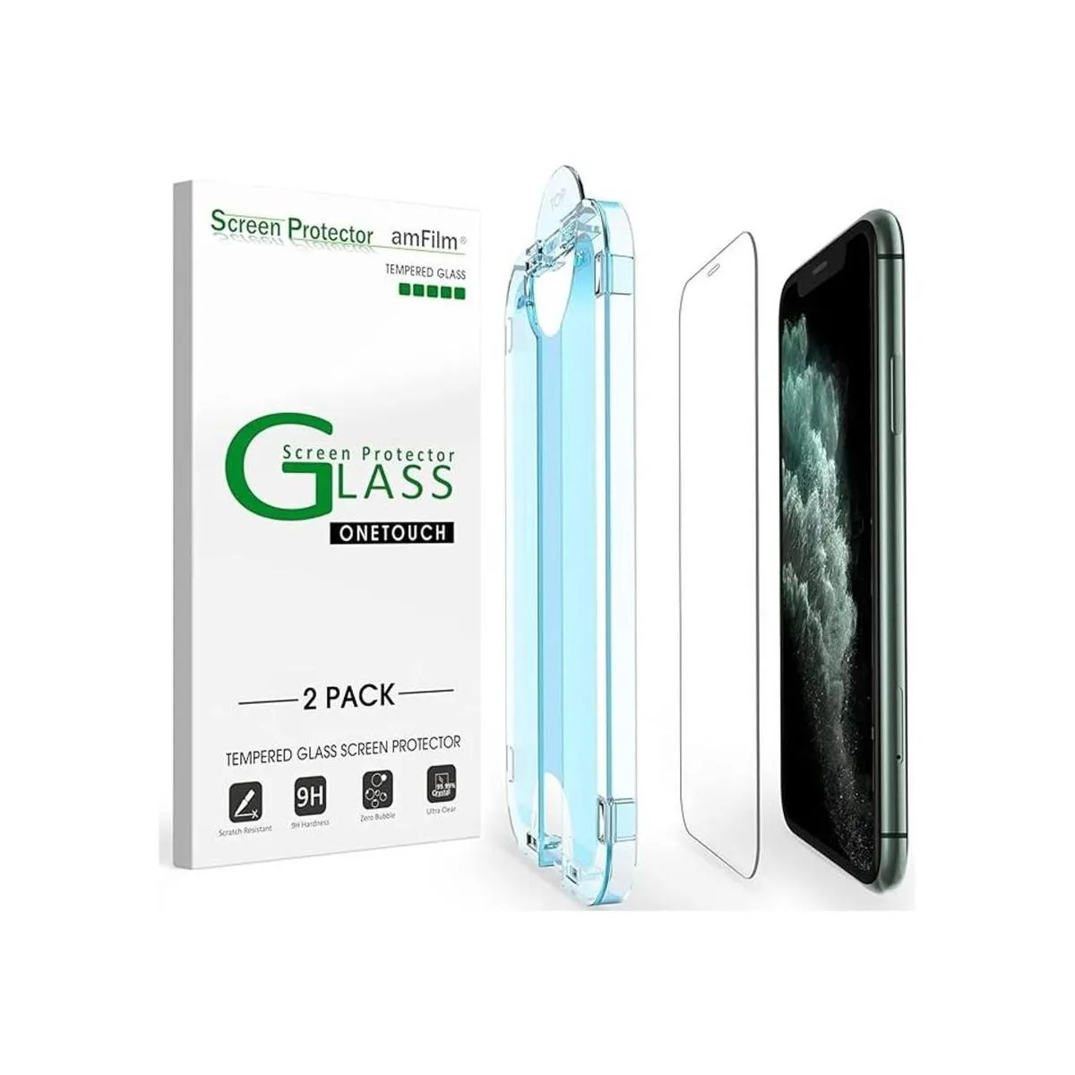 amFilm Paquete de 2 protectores de pantalla de vidrio OneTouch para iPhone 11 Pro Max 6.5 pulgadas con kit de fácil instalación