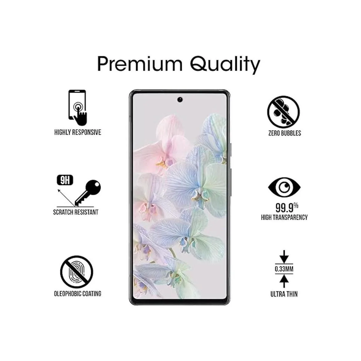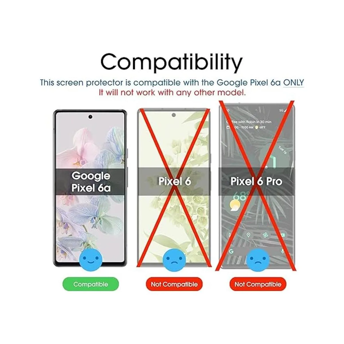Altamente duradero y resistente a los arañazos: el protector de pantalla de vidrio templado Pixel 6A dureza 9H y cubierto con revestimiento oleofóbico para reducir las huellas dactilares.