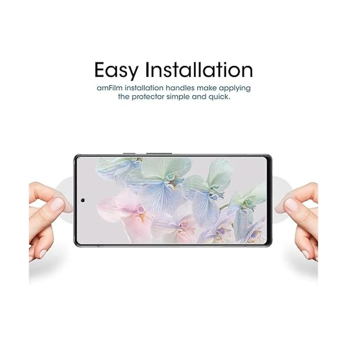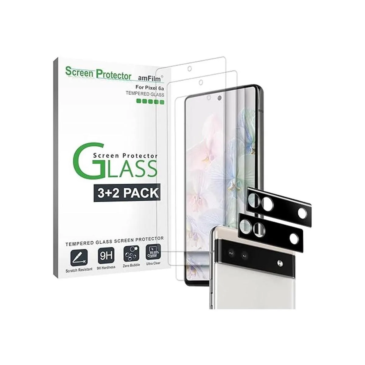 amFilm Paquete de 3 protectores de pantalla de vidrio templado para Google Pixel 6A 5G 2022, con 2 protectores de lente de cámara, 0.013 in de grosor, transparente HD, antiarañazos, sin burbujas