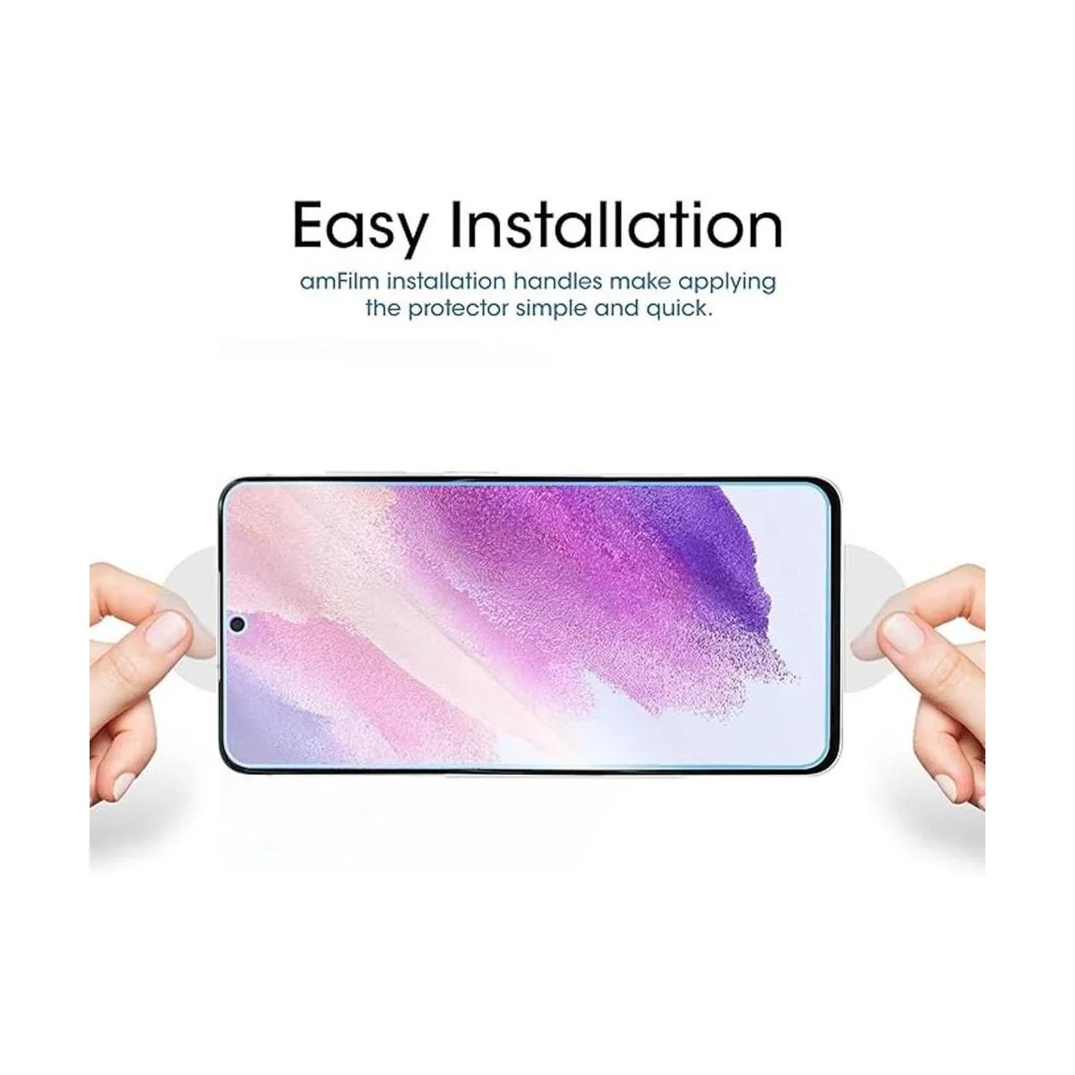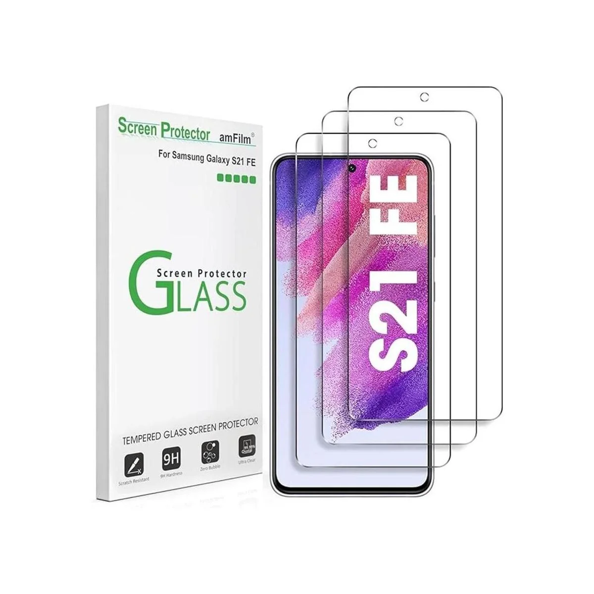 amFilm Protector de pantalla de vidrio templado compatible con Samsung Galaxy S21 FE Fan Edition 5G 2021 y protector de lente de cámara con kit de fácil instalación, transparente HD, antiarañazos, sin burbujas
