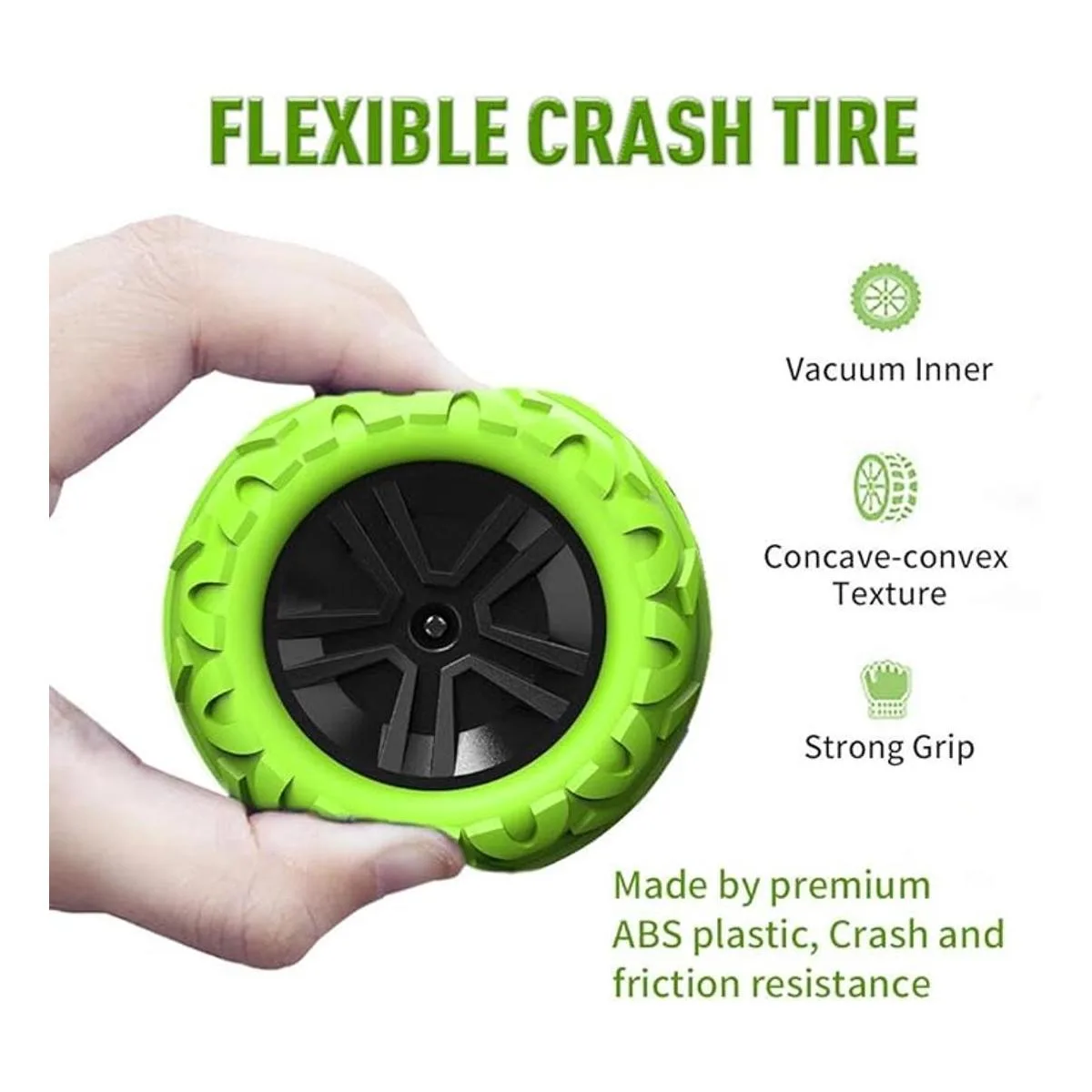 Coche de control remoto todo terreno con protección de material suave: fabricado con plástico ABS ecológico, no tóxico e insípido. Diseño único de neumáticos de goma, resistente a los golpes duradero para jugar en interiores y exteriores en diferentes terrenos, soporta todo tipo de golpes y funciona perfectamente en ellos. Estable, fuerte, elegante y divertido