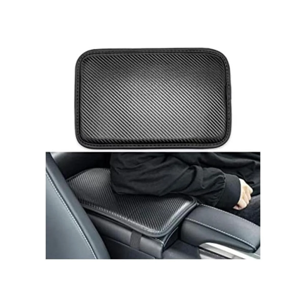 Amiss almohadilla para consola central del auto, ajuste universal, impermeable, funda para la caja del reposabrazos del asiento, de piel sintética y fibra de carbono, funda protectora para la mayoría de los vehículos, vehículos utilitarios deportivos, camiones y autos color negro