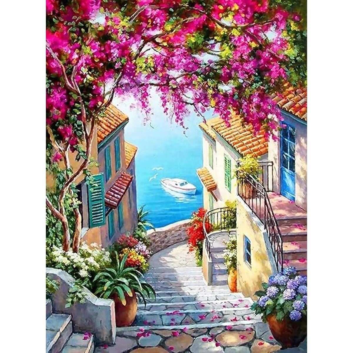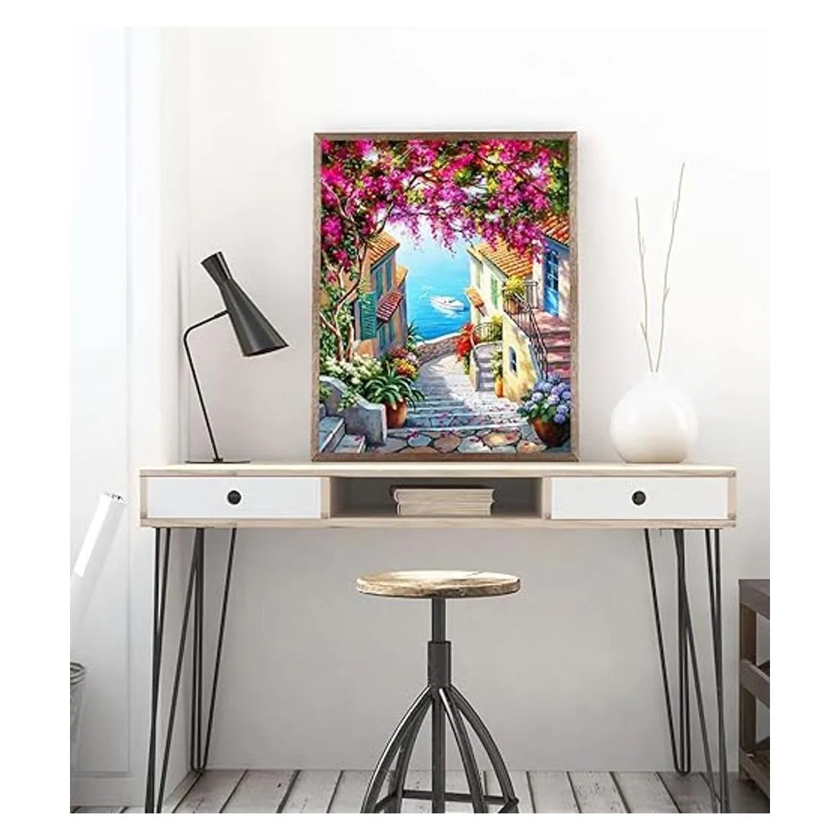 Amissz Kits de pintura de diamantes de paisaje para adultos, taladro completo, kit de arte de diamantes de arquitectura, pintura de diamantes 5D, arte de gemas de arte de diamantes de imitación, tamaño amigo, 12 x 16 pulgadas