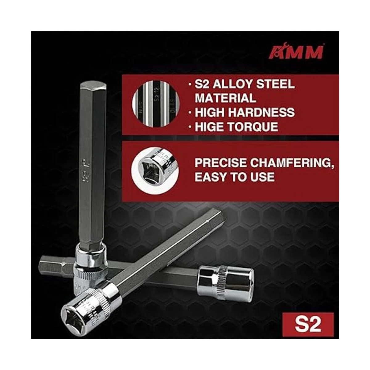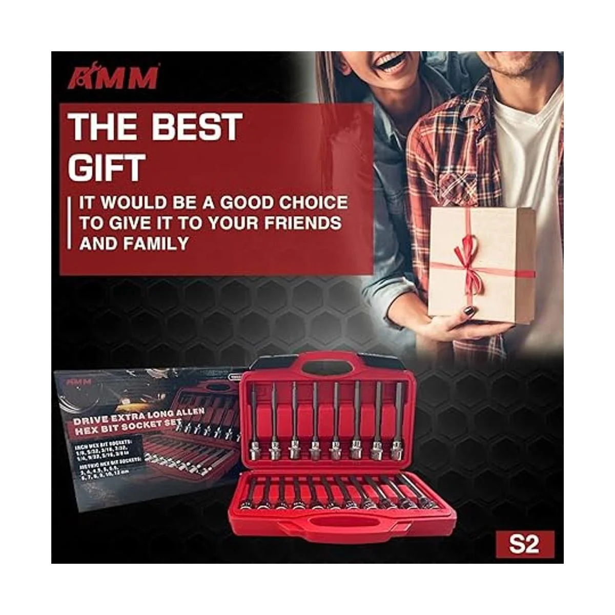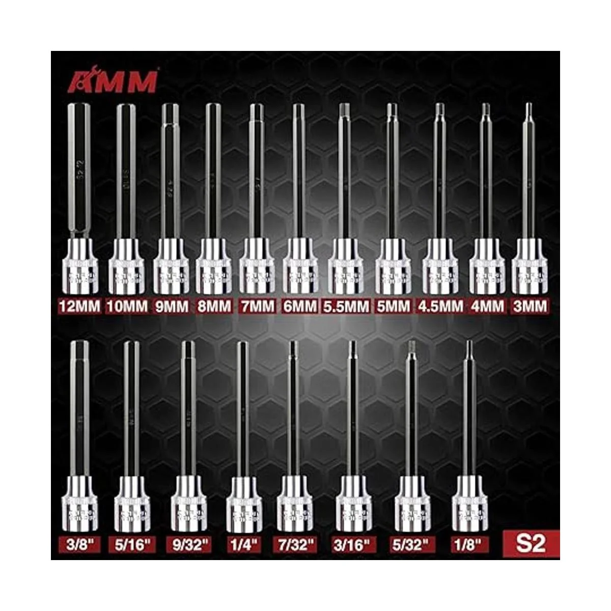 AMM Juego de llaves hexagonales Allen extralargas de 19 piezas de 38 pulgadas, 0.1180.472 in, 1838 pulgadas, acero de aleación S2, accesorios de herramientas duraderos