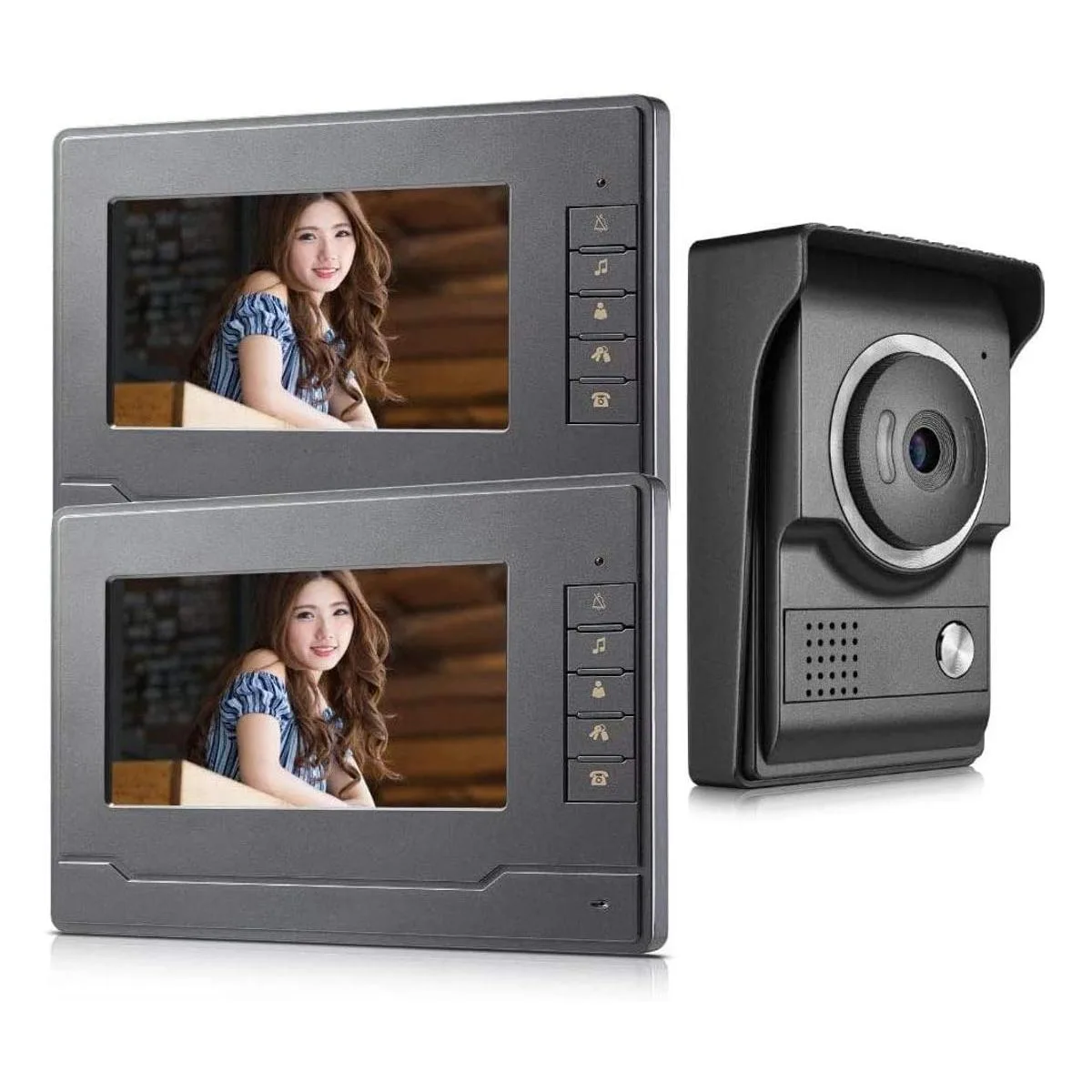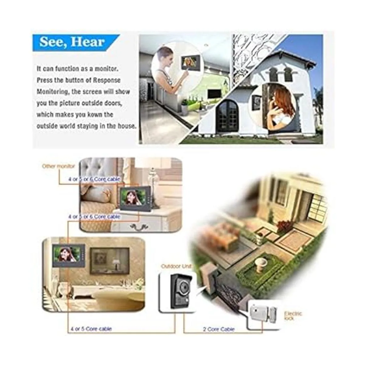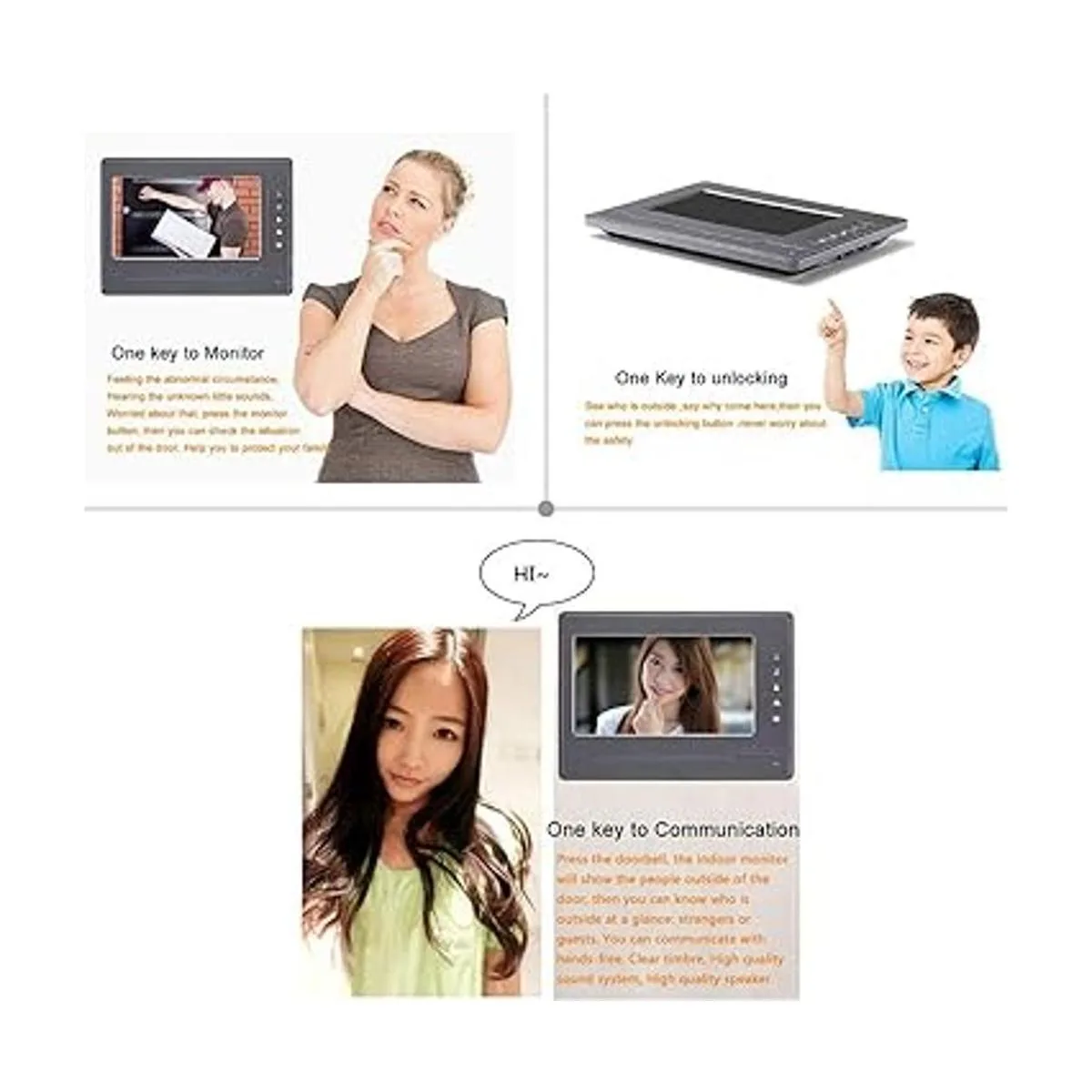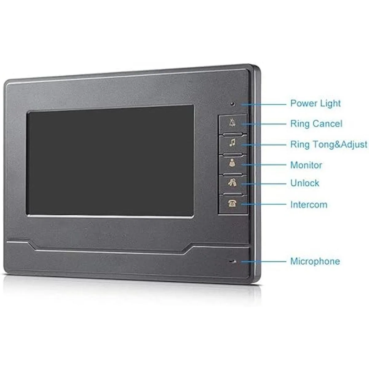 AMOCAM Sistema de timbre de video portero con cable de 7 pulgadas, monitor LCD de videoportero, kits de teléfono compatible con monitoreo, desbloqueo, intercomunicador de puerta de doble vía para sistemas de seguridad del hogar, 1 cámara IR de 2 colores