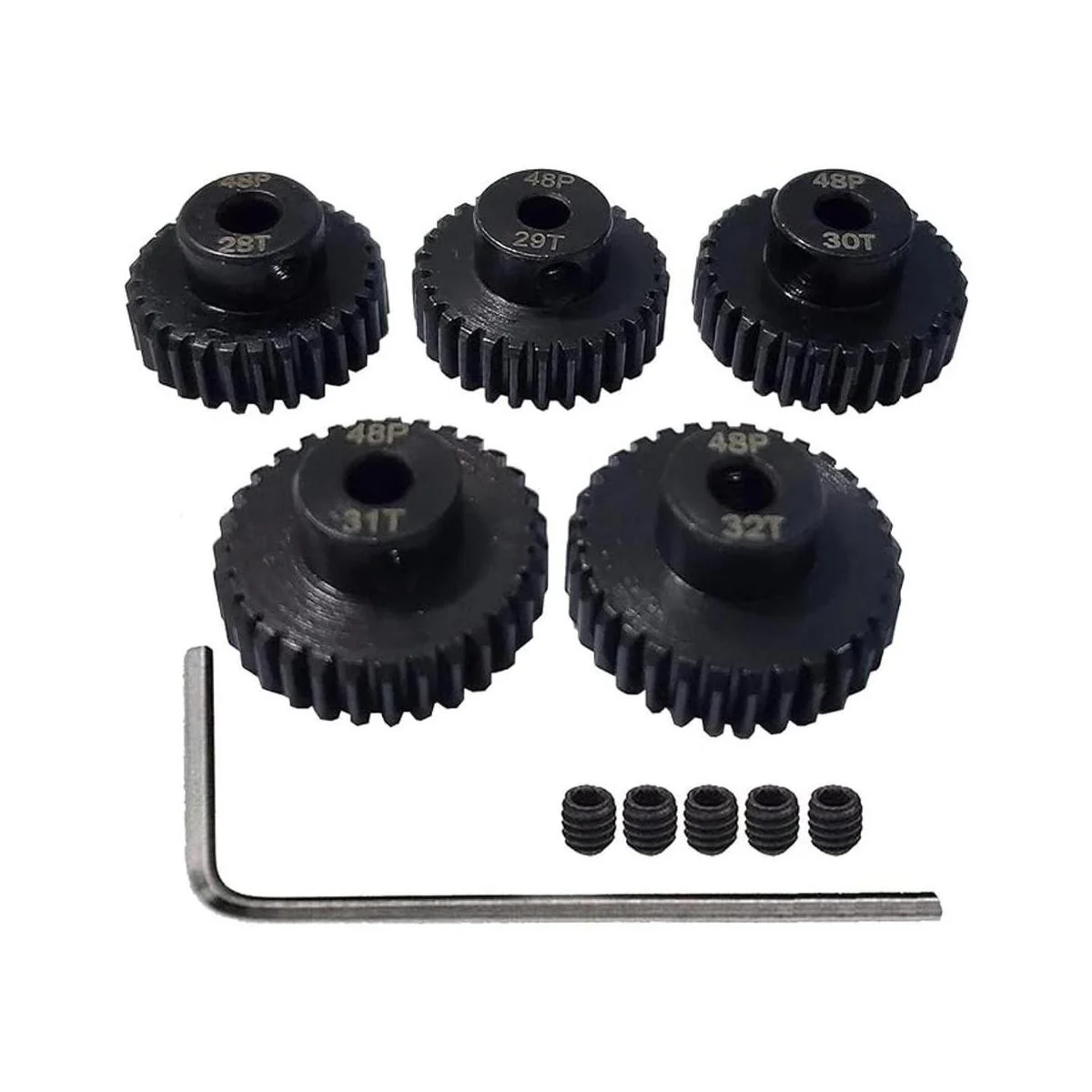AMOGOT engranaje de piñón de acero 48P 28T 29T 30T 31T 32T 0.125 in eje motor engranajes conjunto con llave hexagonal para 110 RC cepillo sin cepillo motor RC actualización parte