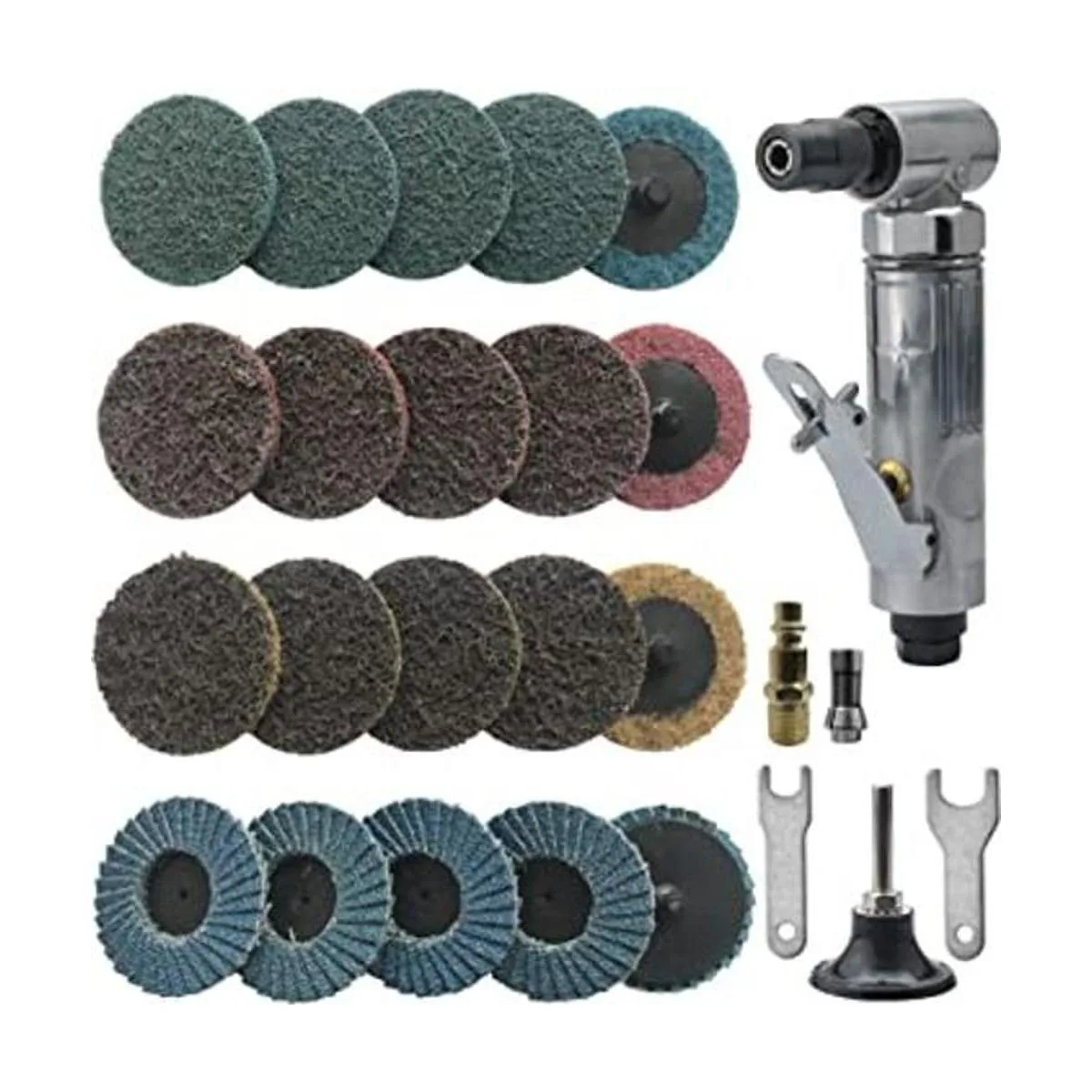 Amoladora de aire de 14 pulgadas con 20 discos de lijado, ángulo recto, agarre ergonómico, amoladora neumática de ángulo pulido, kit de amoladora de aire