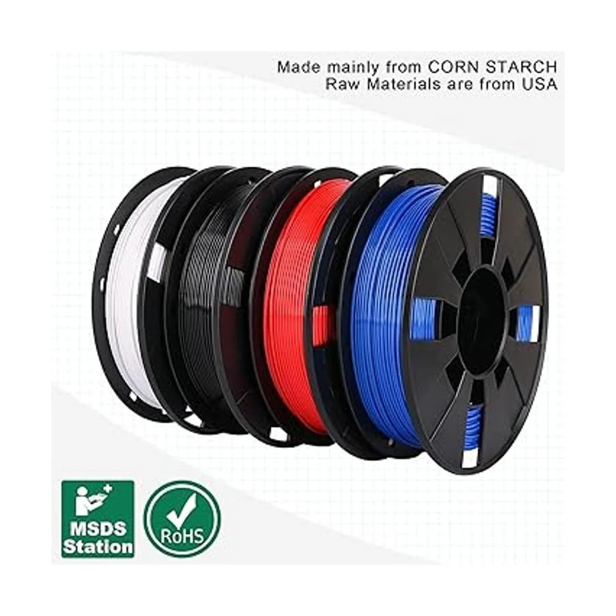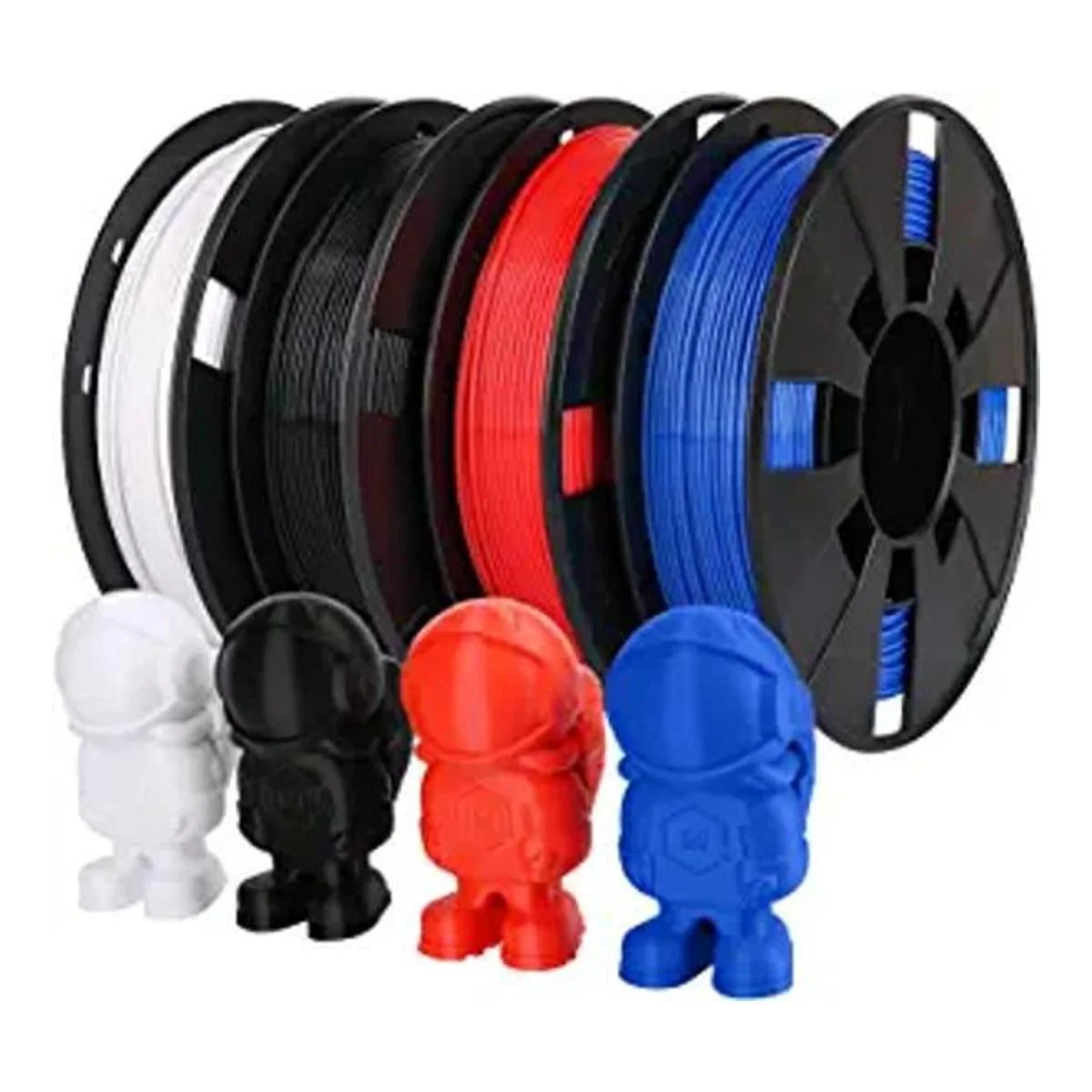 AMOLEN Filamento de impresora 3D, filamento PLA paquete de 0.069 in, blanco, rojo, negro, azul paquete de filamento de impresión 3D, paquete de 8.82 oz x 4 carretes paquete, 1 kg2,2 lb en total