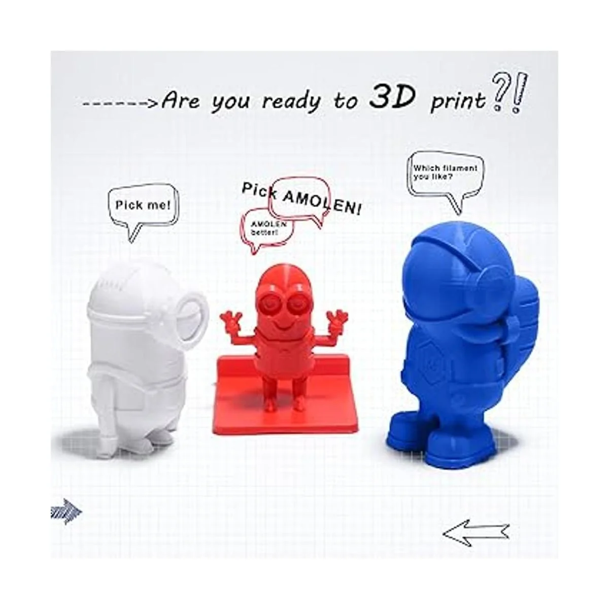 Alta compatibilidad: los paquetes de filamento PLA 3D de AMOLEN son perfectamente compatibles con la mayoría de las impresoras 3D FDM y bolígrafos 3D, Comgrow Creality Ender, Anycubic, Creality 3D, Sunlu, Eryone, MyNT3D, 3Doodler, 0.069 in de diámetro consistente de filamento PLA de precisión dimensional / 0.001 in.