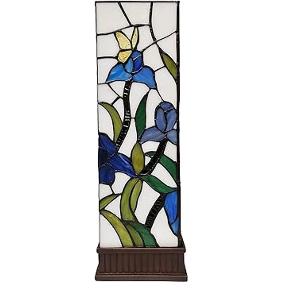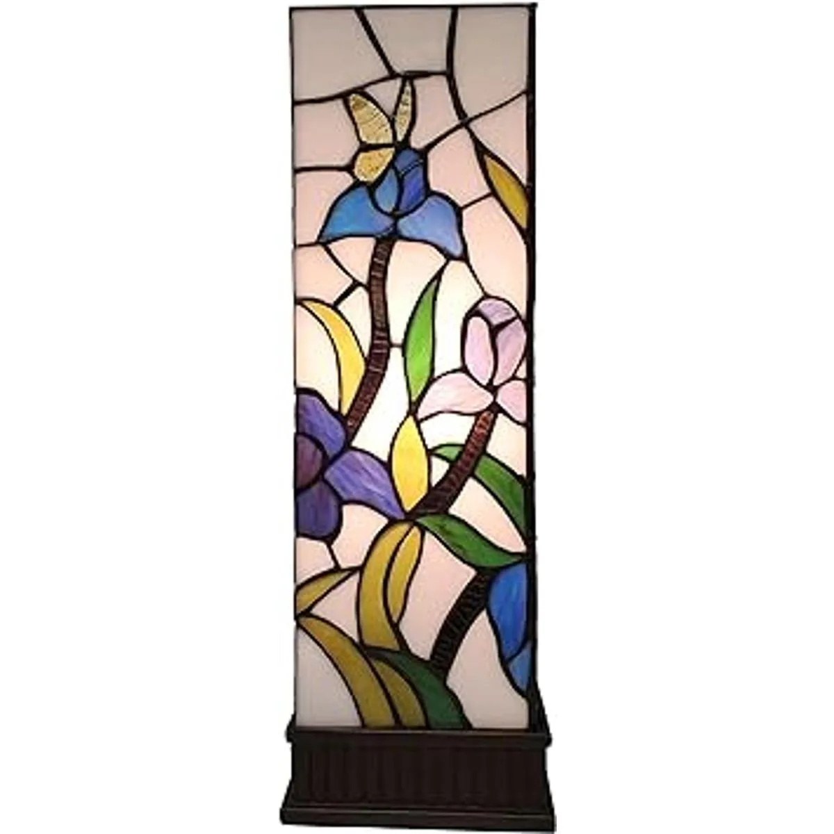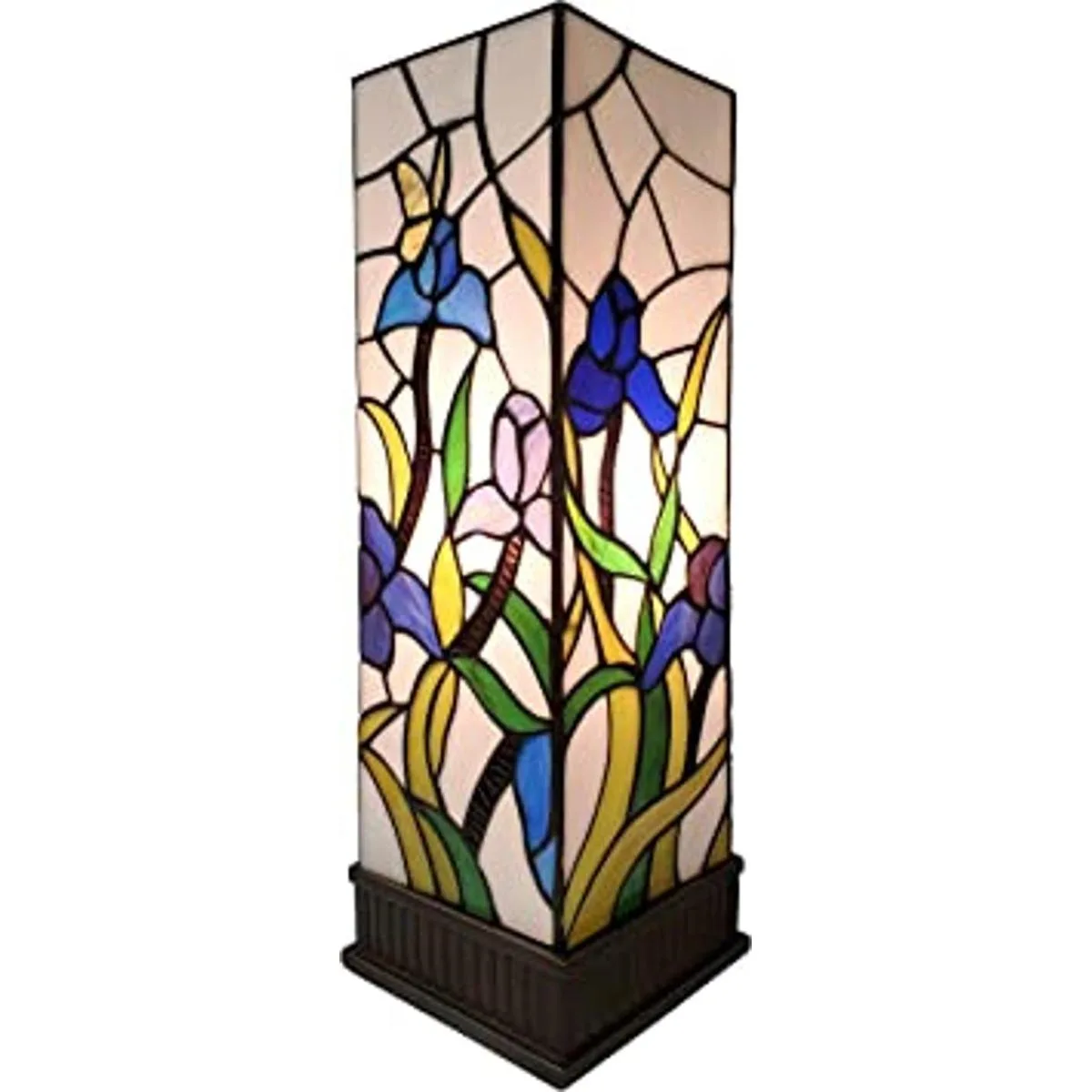 Amora Lighting Tiffany Style Lámpara de mesa Banker Azul Verde Rosa Iris Flor Mariposa Vitral Mesita de noche Mesita de noche Antiguo Vintage 16 Alto 6 Ancho Regalo hecho a mano AM1115TL06B, Multicolor, Mediano