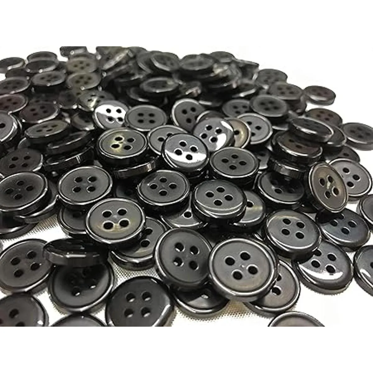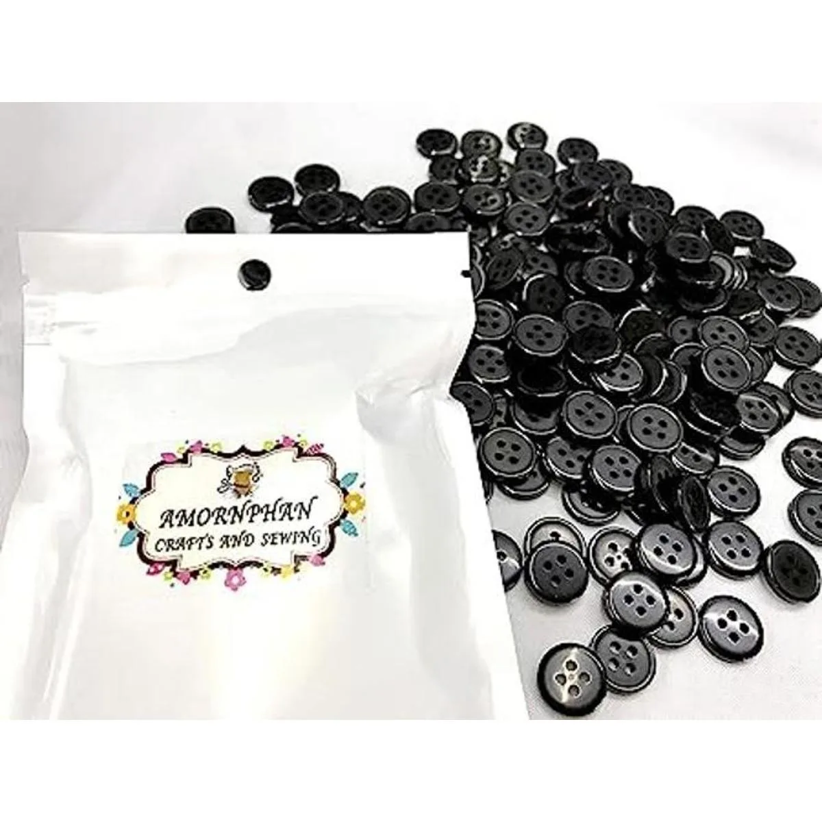 AMORNPHAN 0.591 in 58 4 agujeros color negro estándar camisa botones redondos botones planos costura manualidades camisa Paños DIY Pack de 200 piezas negro