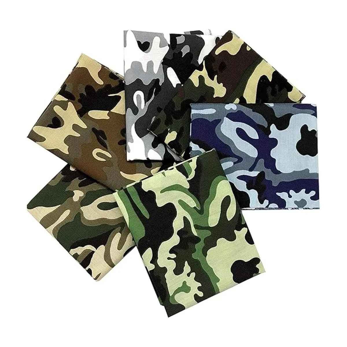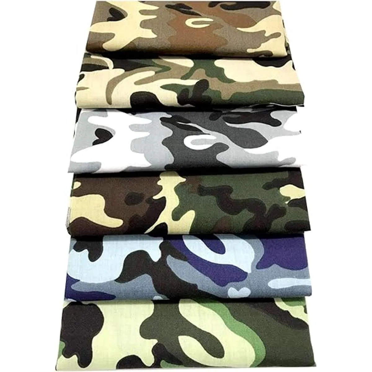 Tema: 6 tipos diferentes de patrones de camuflaje del ejército militar, bonito surtido de estampados diferentes. Adecuado para colchas, fundas de cojín, monederos pequeños, juguetes, monederos, manteles, una lista infinita de posibilidades. Maravilloso diseño, color y textura.