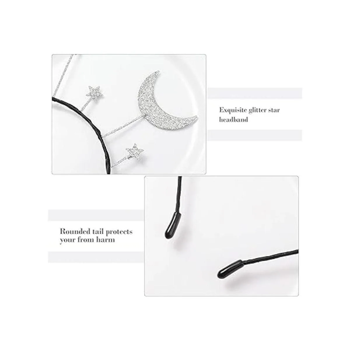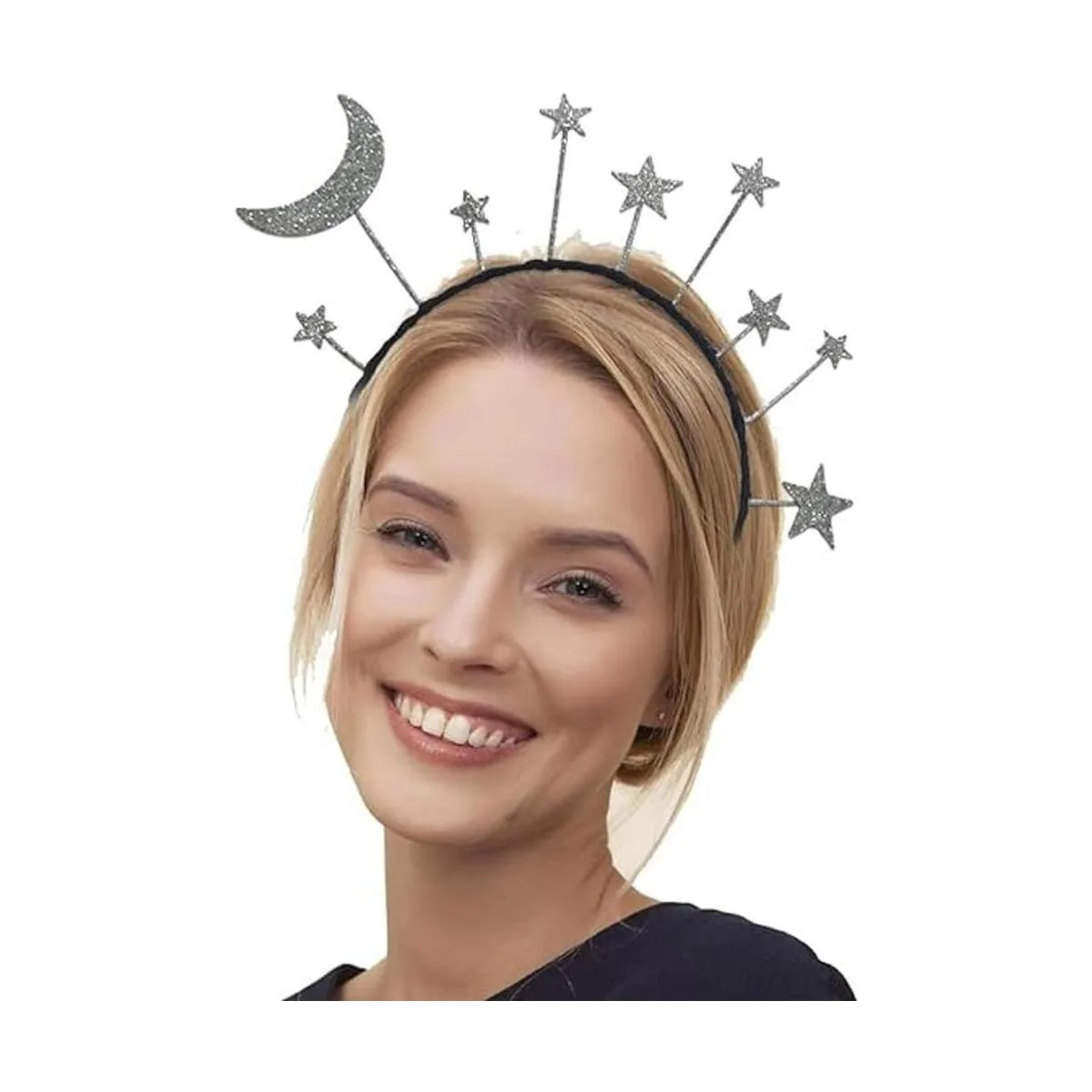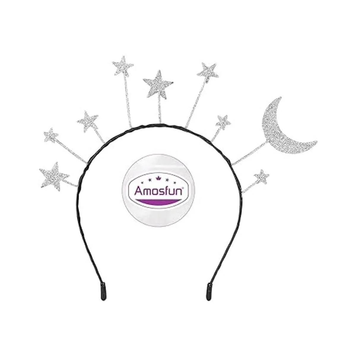 Amosfun Diadema de luna con estrella para fiesta de cumpleaños, accesorios para el cabello con purpurina para fiesta de disfraces de cumpleaños, plata, talla M