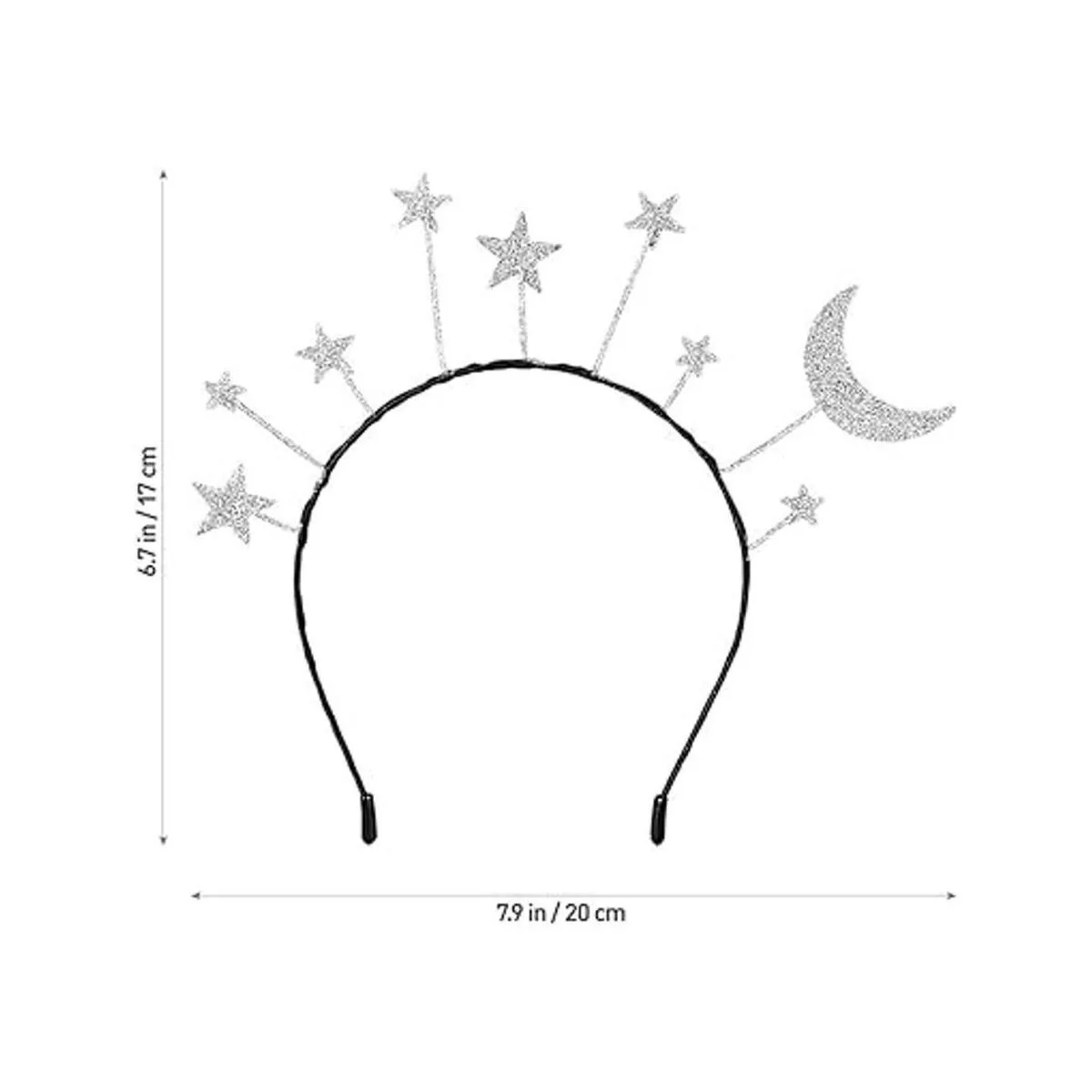 El paquete incluye 1 diadema de estrella y luna; tamaño aproximado de 7.9 x 6.7 pulgadas. Se adapta tanto a adultos, adolescentes como a niños. Diadema de moda con estrella de luna decorada para todo tipo de fiestas.