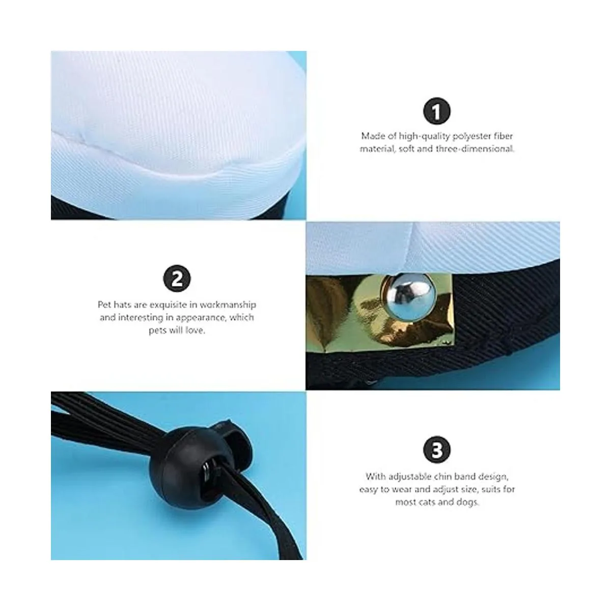 Diseño ajustable: el sombrero de capitán para mascotas cuenta con una correa ajustable negra, que se puede ajustar perfectamente para adaptarse a la mayoría de las mascotas y mantener el sombrero firmemente en su lugar.