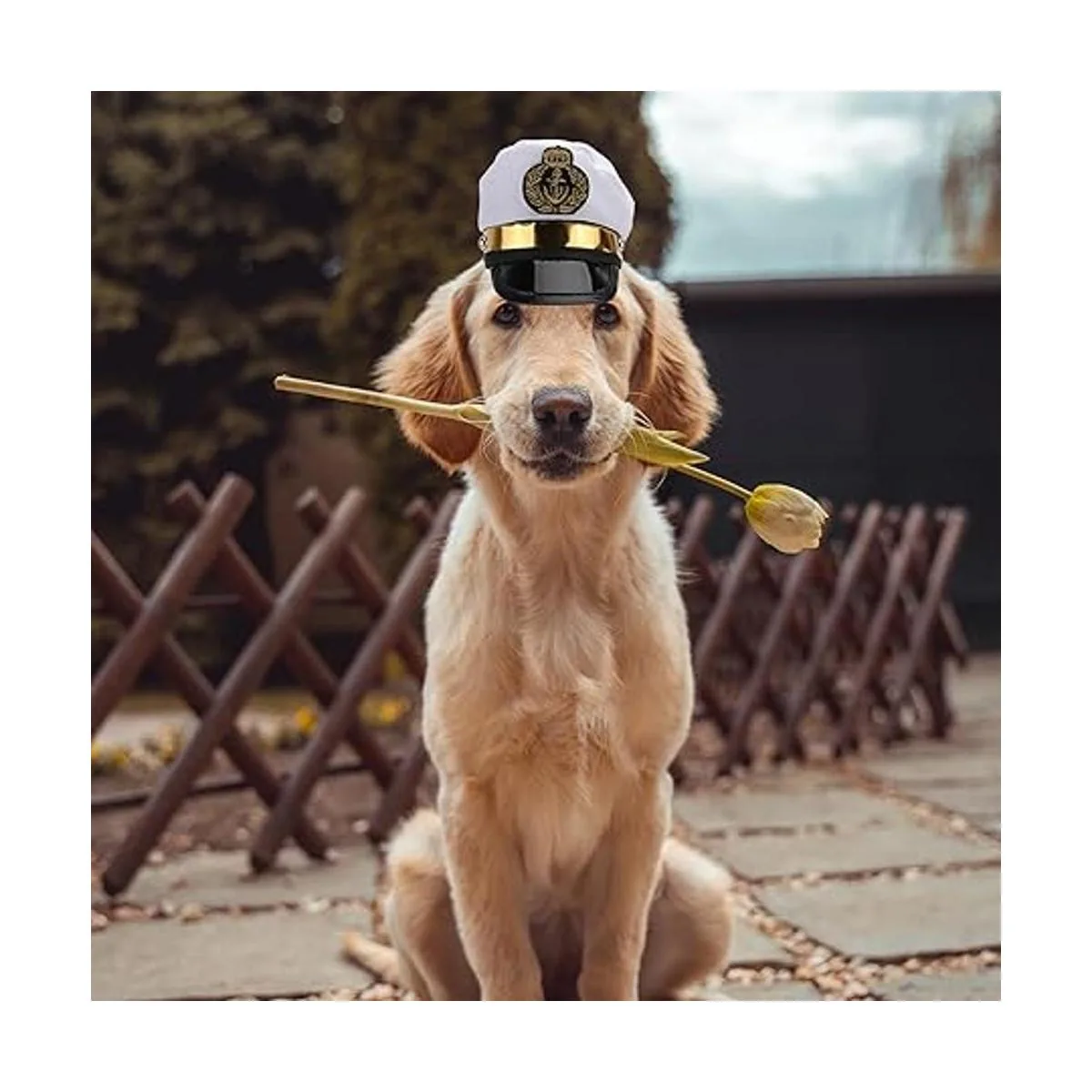 Material de alta calidad: el sombrero de capitán está hecho de plástico y tela de poliéster, que es ligero y suave para que tus amigos de pelaje.