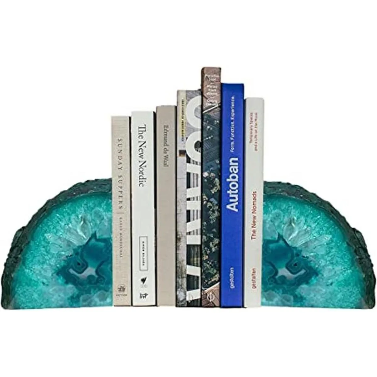 Geoda de ágata natural: Sujetalibros decorativos de geoda de ágata natural, estos sujetalibros se adaptan a una variedad de temas decorativos para libros.
