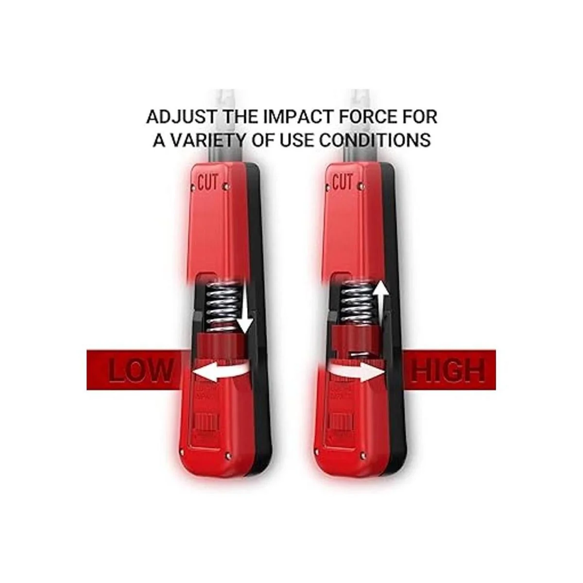Tiene un ajuste de perforación HI y LO dependiendo del medidor de alambre, utiliza LO para 24AWG, utiliza HI para 23AWG.