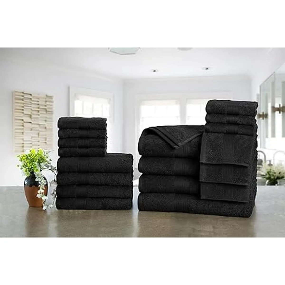 Ample Decor Juego de 18 toallas de baño, 4 toallas de mano, 4 toallas de baño, 10 paños de lavado, 600 GSM, 100 algodón, de alta absorción, de secado rápido, ideal para regalar, color negro