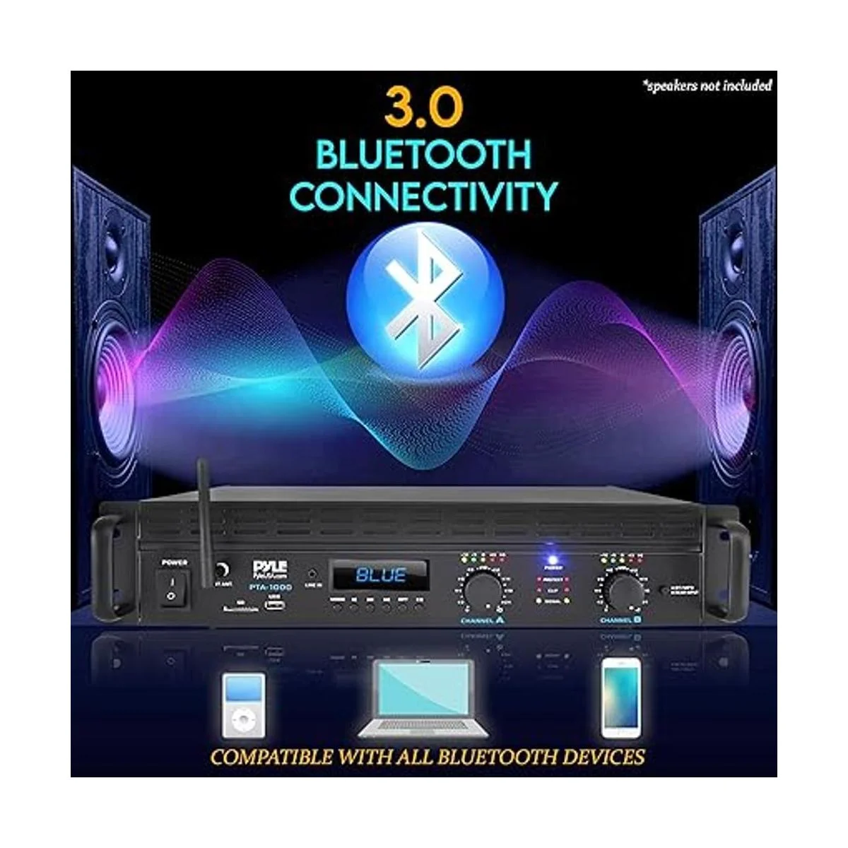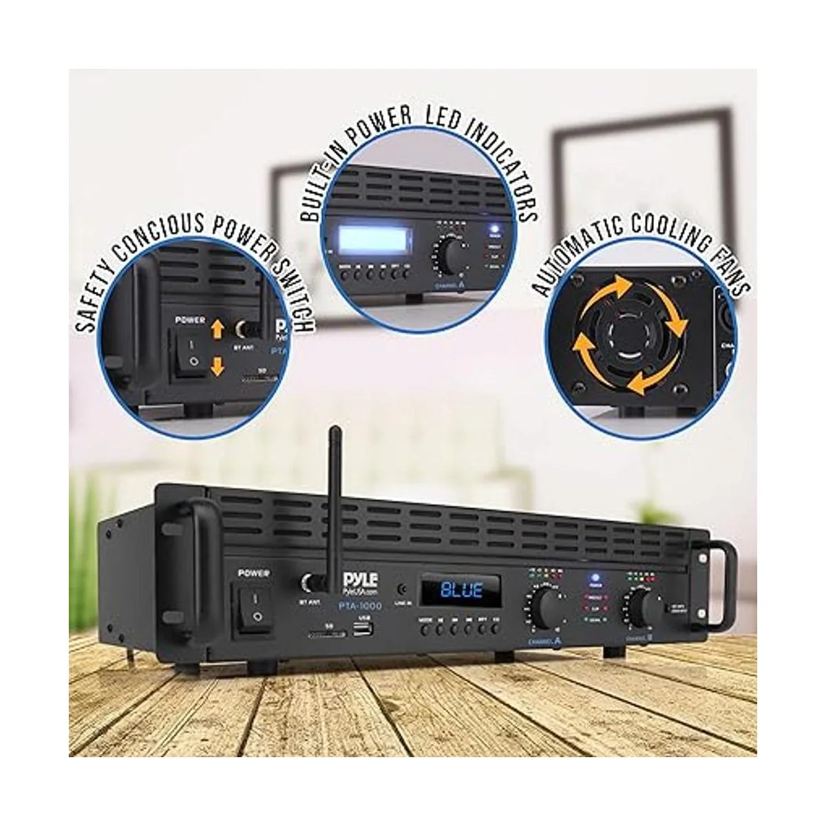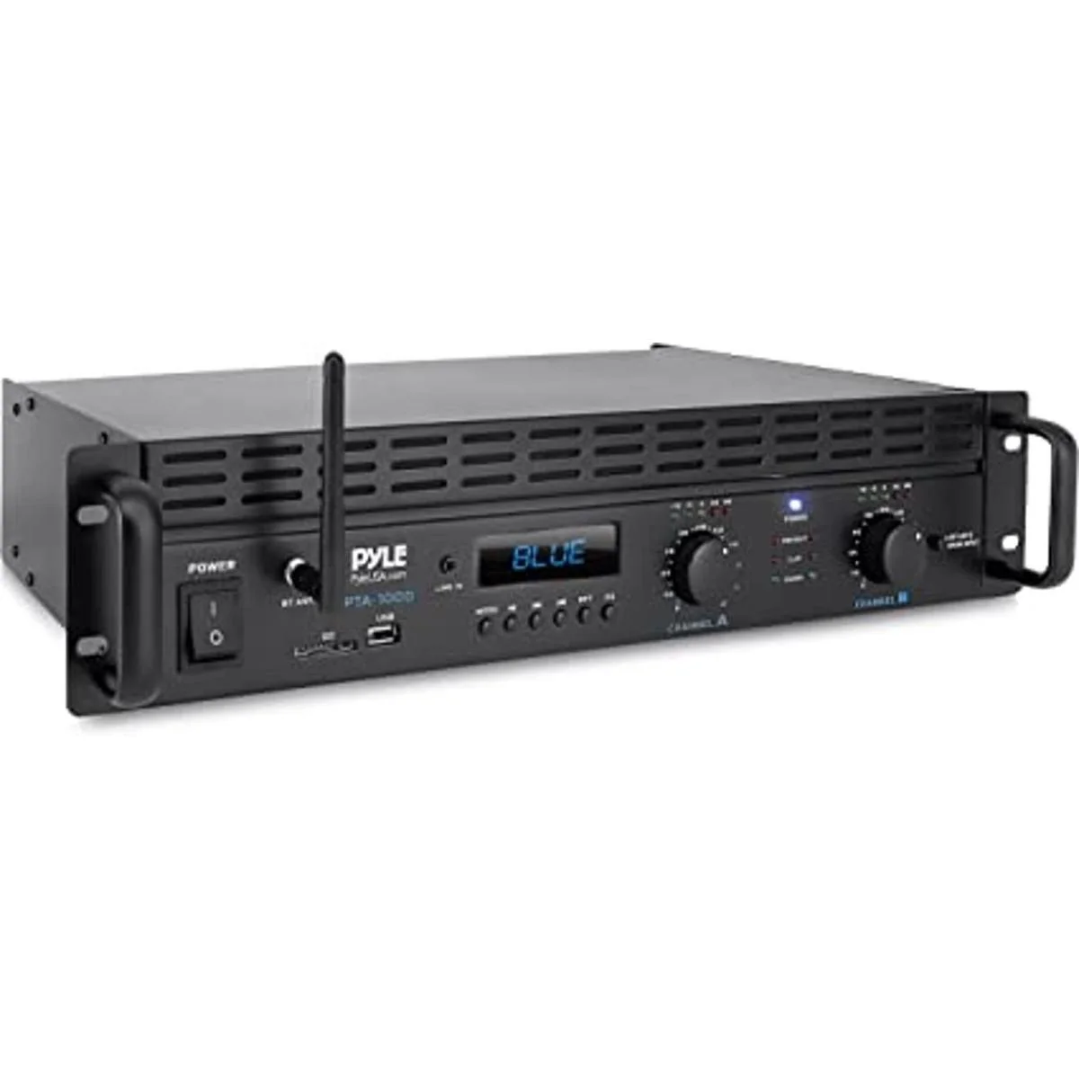 Amplificador de potencia Bluetooth de 2 canales, montaje en rack puenteable de 2000 W, sonido de audio profesional, receptor estéreo inalámbrico para el hogar con entrada TRS XLR, LCD, modo puente, ventilador de refrigeración, sistema de altavoces de entretenimiento Pyle