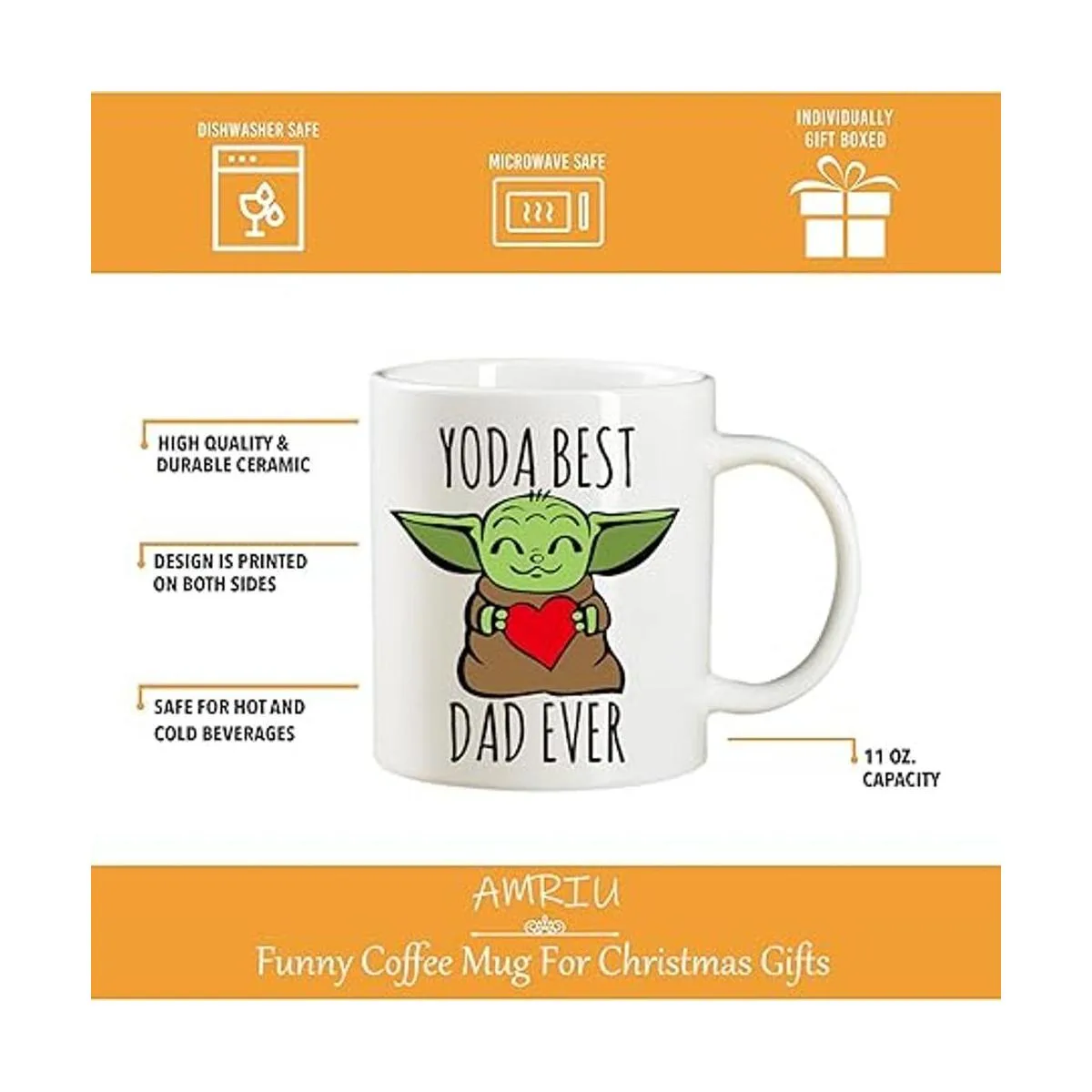 AMRIU Taza de café Baby Yoda Best Dad Ever Lindas tazas de regalo para papá Taza de café divertida y novedosa Regalos únicos de Navidad para papá de hija, hijo, esposa, niños, regalo del día del padre