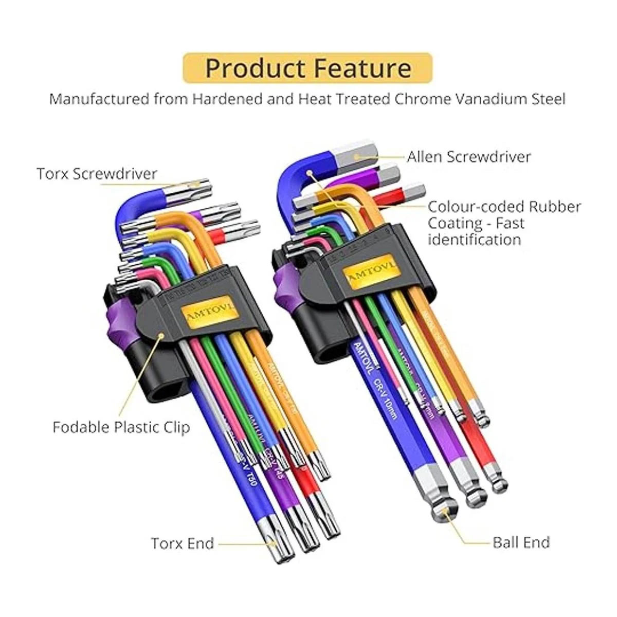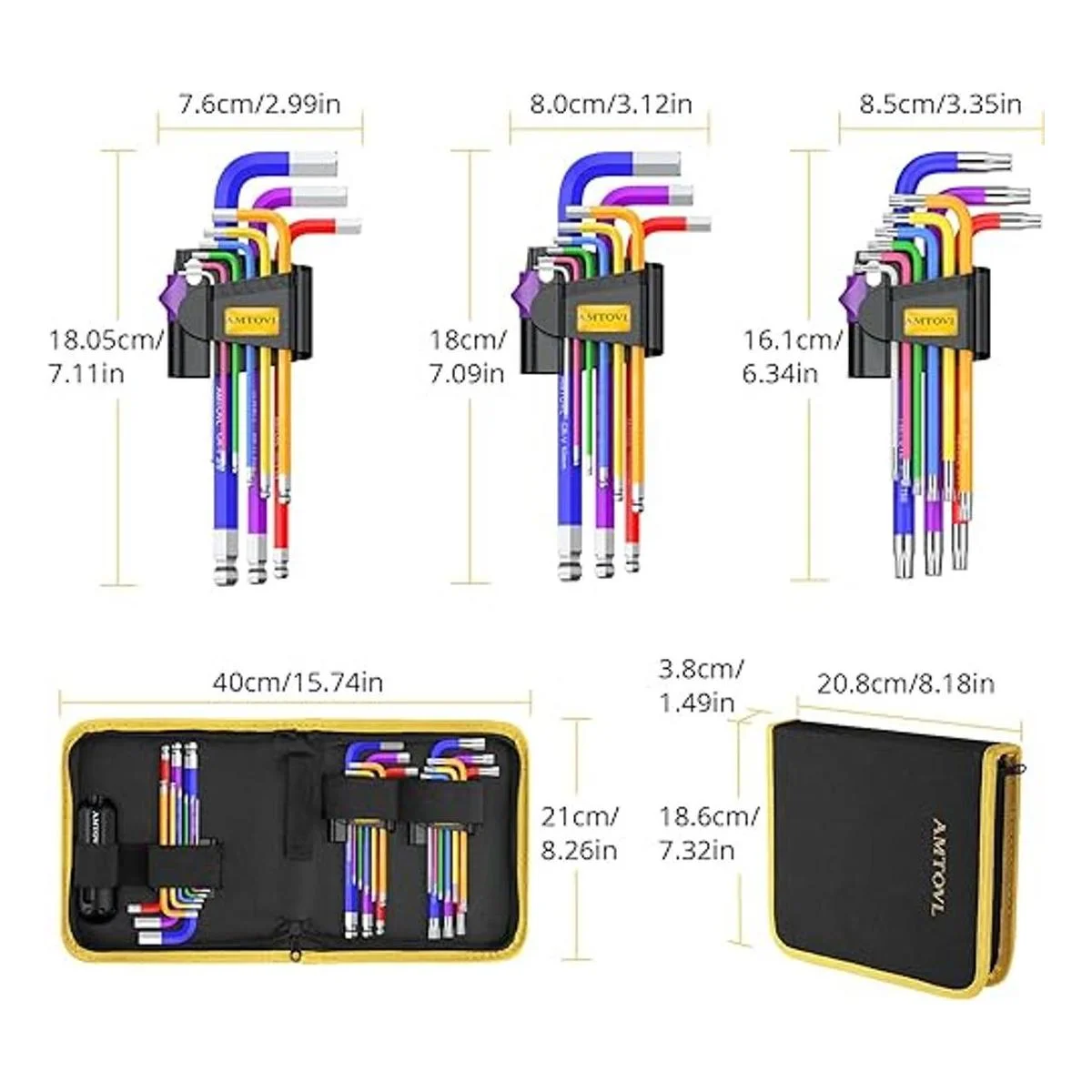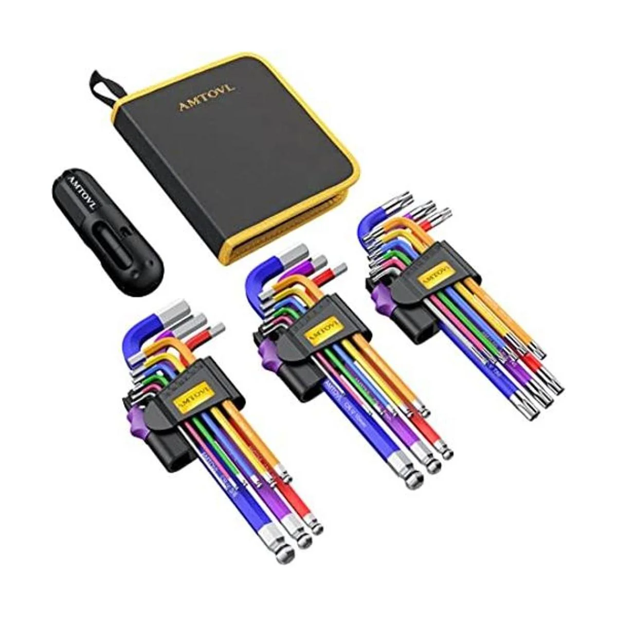 AMTOVL Juego de llaves hexagonales, juego de llaves Allen de 29 piezas y juego de llaves de estrella, juego de llaves hexagonales imperiales métricas extra largas con codificación de colores con mango en T de 0.059 in0.394 in, T10T50, 11638 para reparación de bicicletas en el hogar