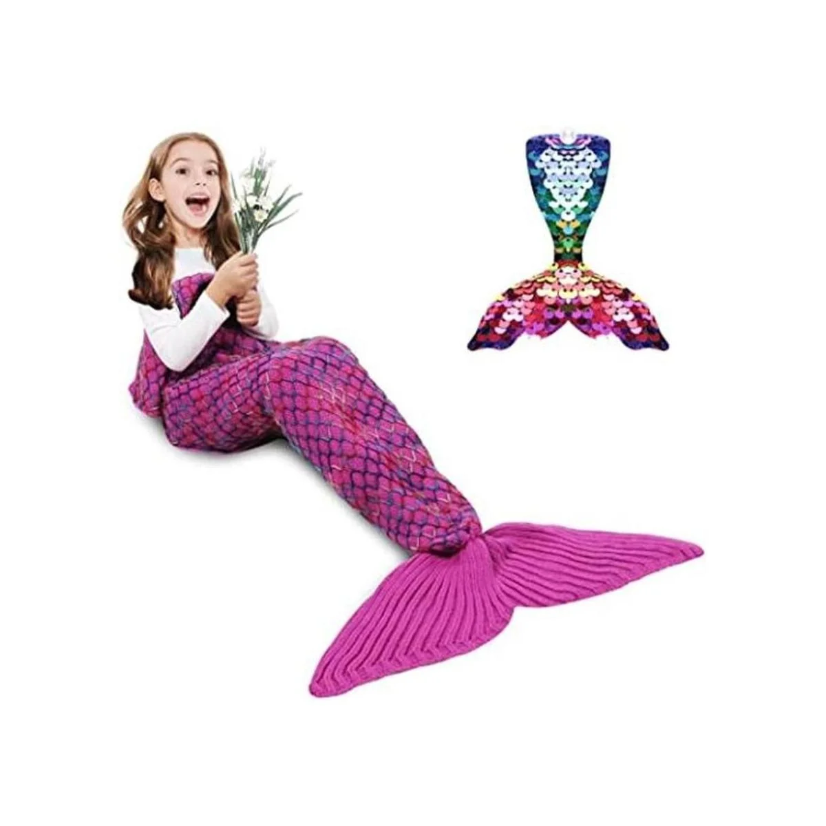 AmyHomie Manta de cola de sirena, manta de saco de dormir de ganchillo suave para niños y adultos, regalo de sirena para niñas arco iris, niños