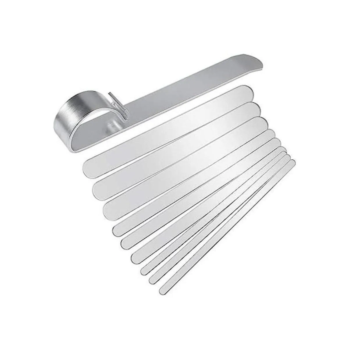 El paquete incluye: 9 pulseras de acero inoxidable en blanco, 1 barra de flexión para pulsera.