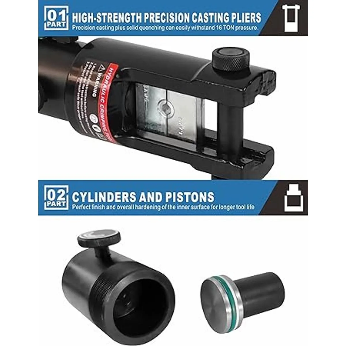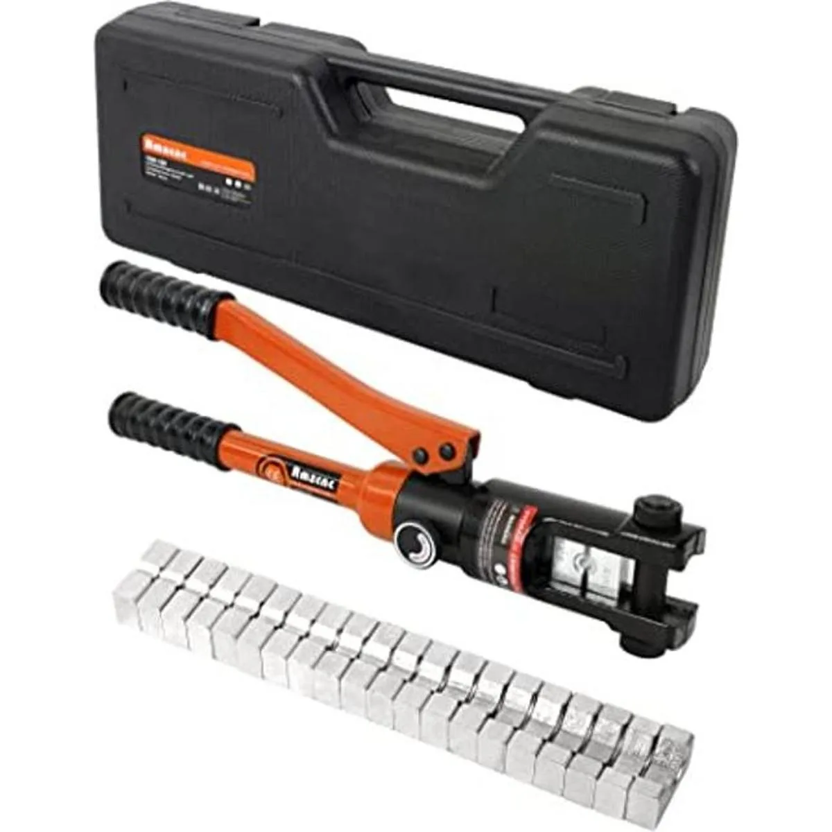 Contenido del paquete: 1 crimpadora hidráulica, 8 pares de troqueles, 1 funda de plástico duradera.