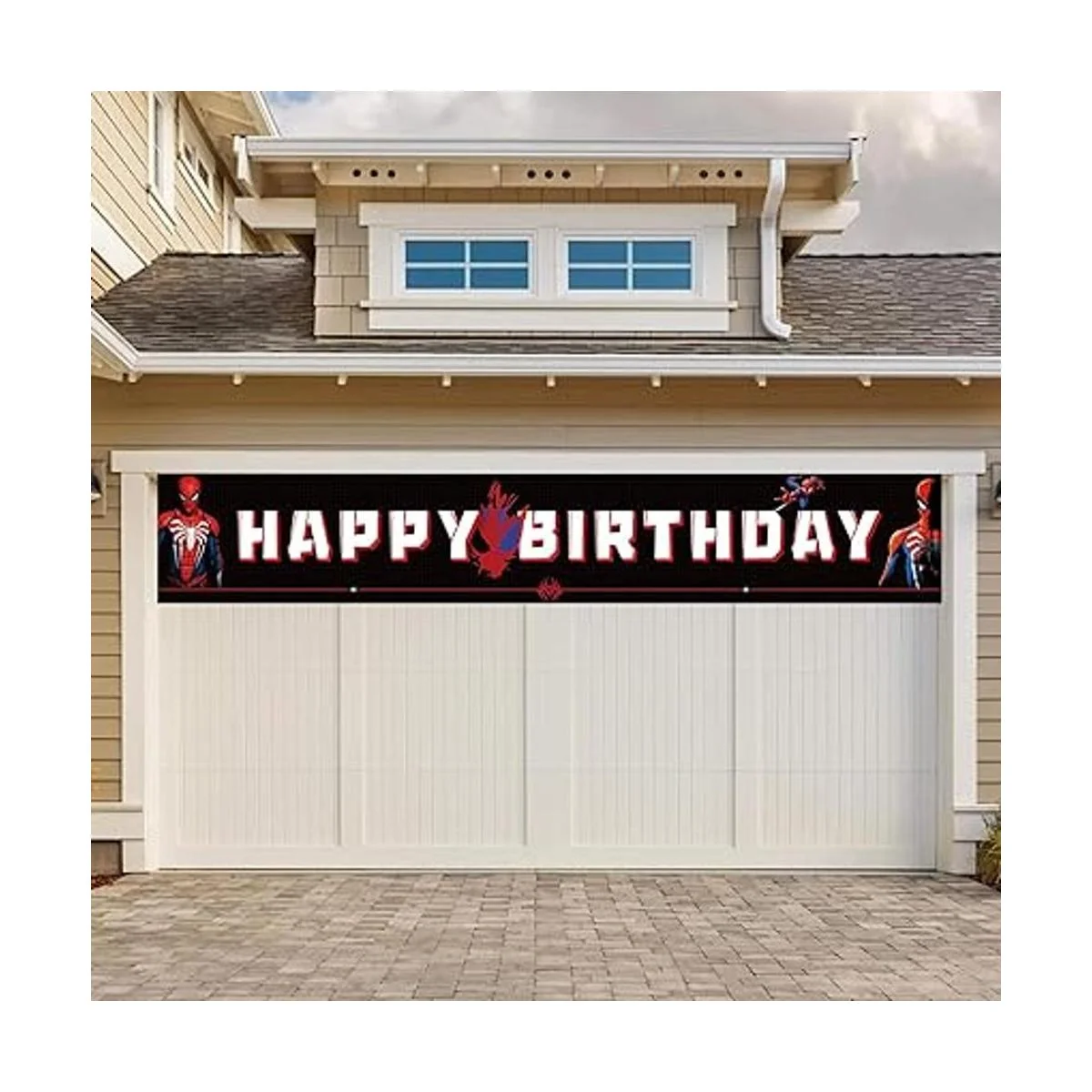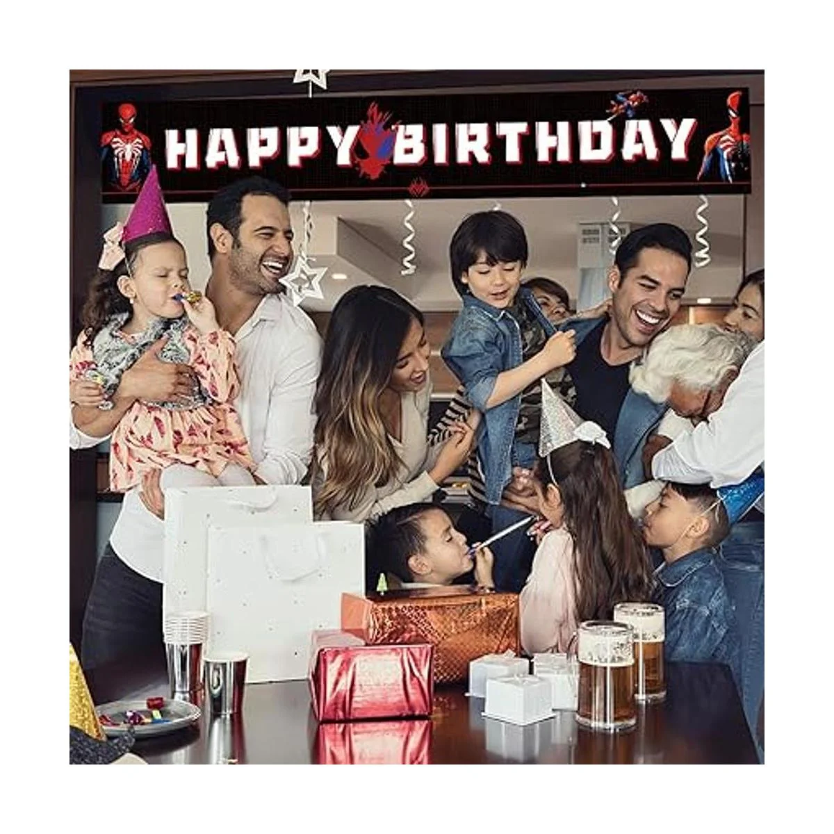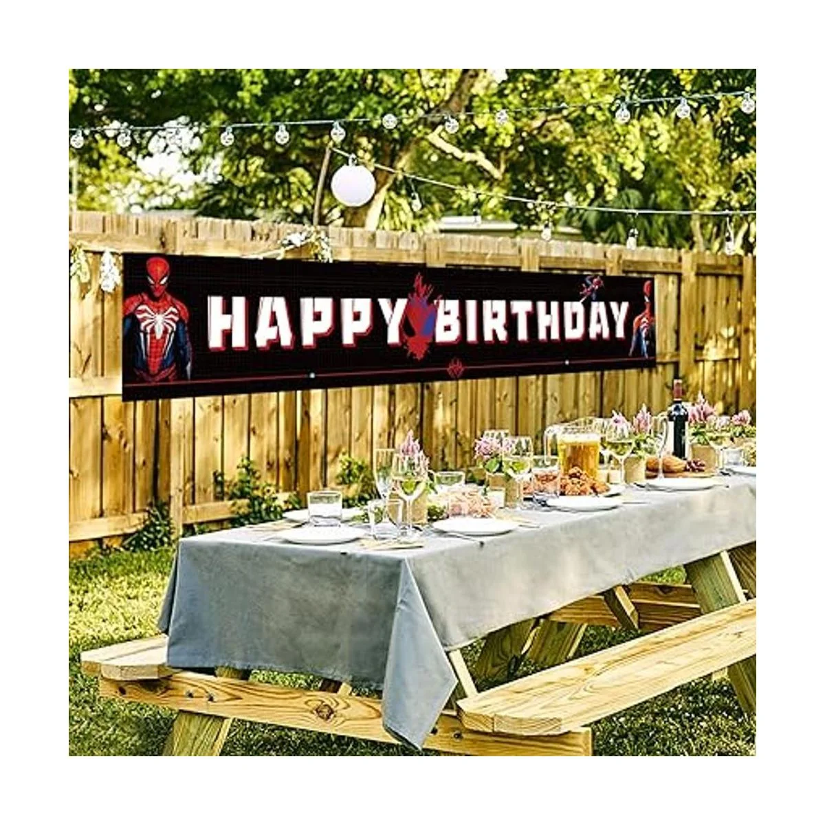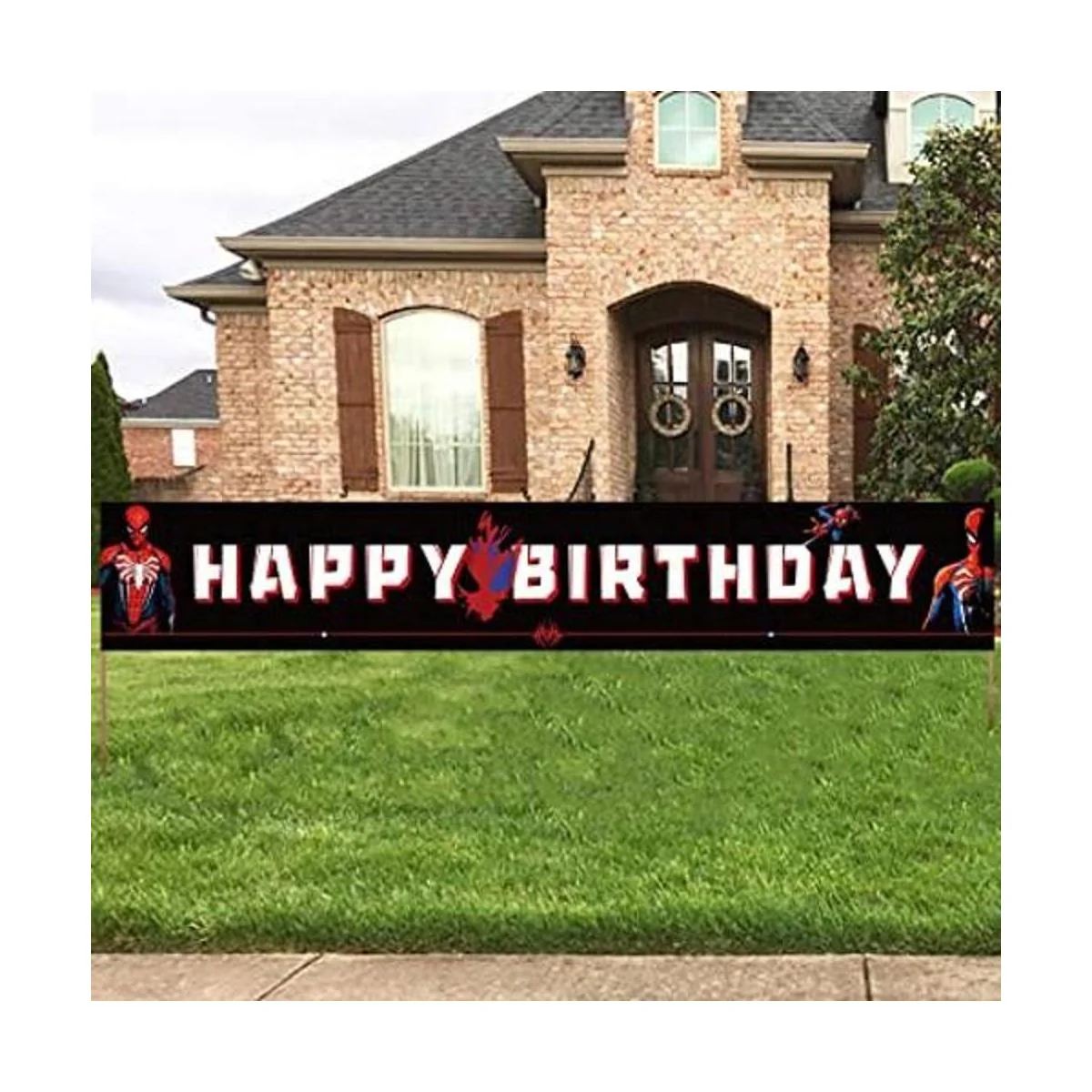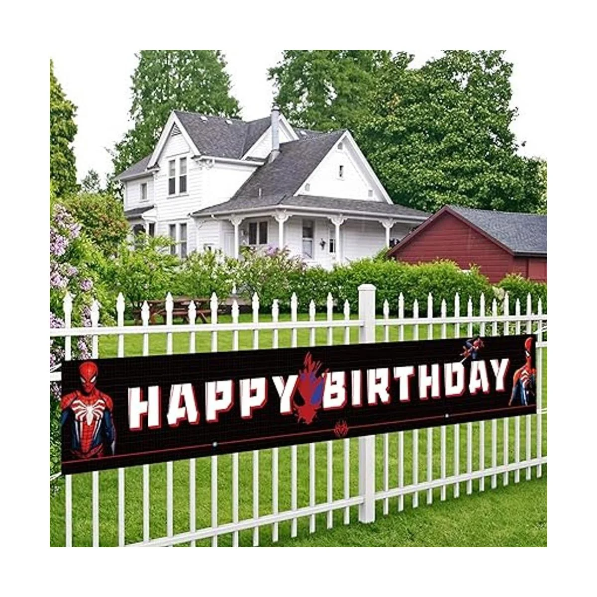ANATANOWOR Cartel grande de decoración de cumpleaños de Spiderman con diseño de Spiderman de feliz cumpleaños, suministros de decoración de fiesta de cumpleaños de Spiderman 9.8 x 1.6 pies