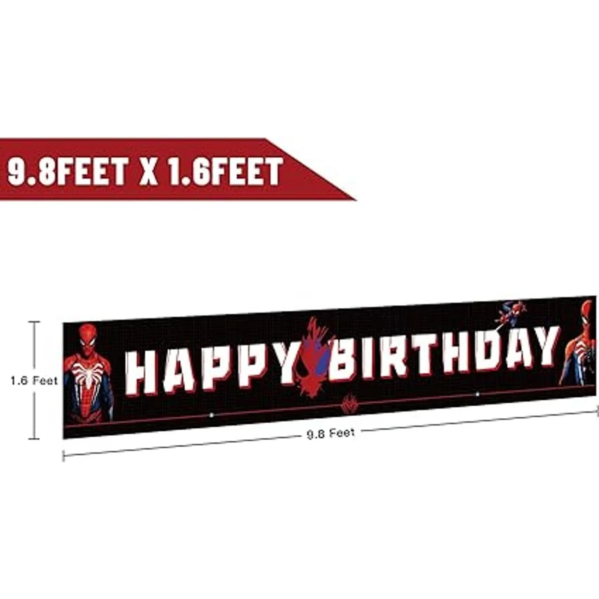 Tamaño grande: el paquete incluye una pancarta grande de Spiderman Happy Birthday, mide 9.8 ft x 19.7 in, lo suficientemente grande para decoraciones perfectas de fiesta de cumpleaños Spiderman y para fondos de fotografía en tu fiesta.