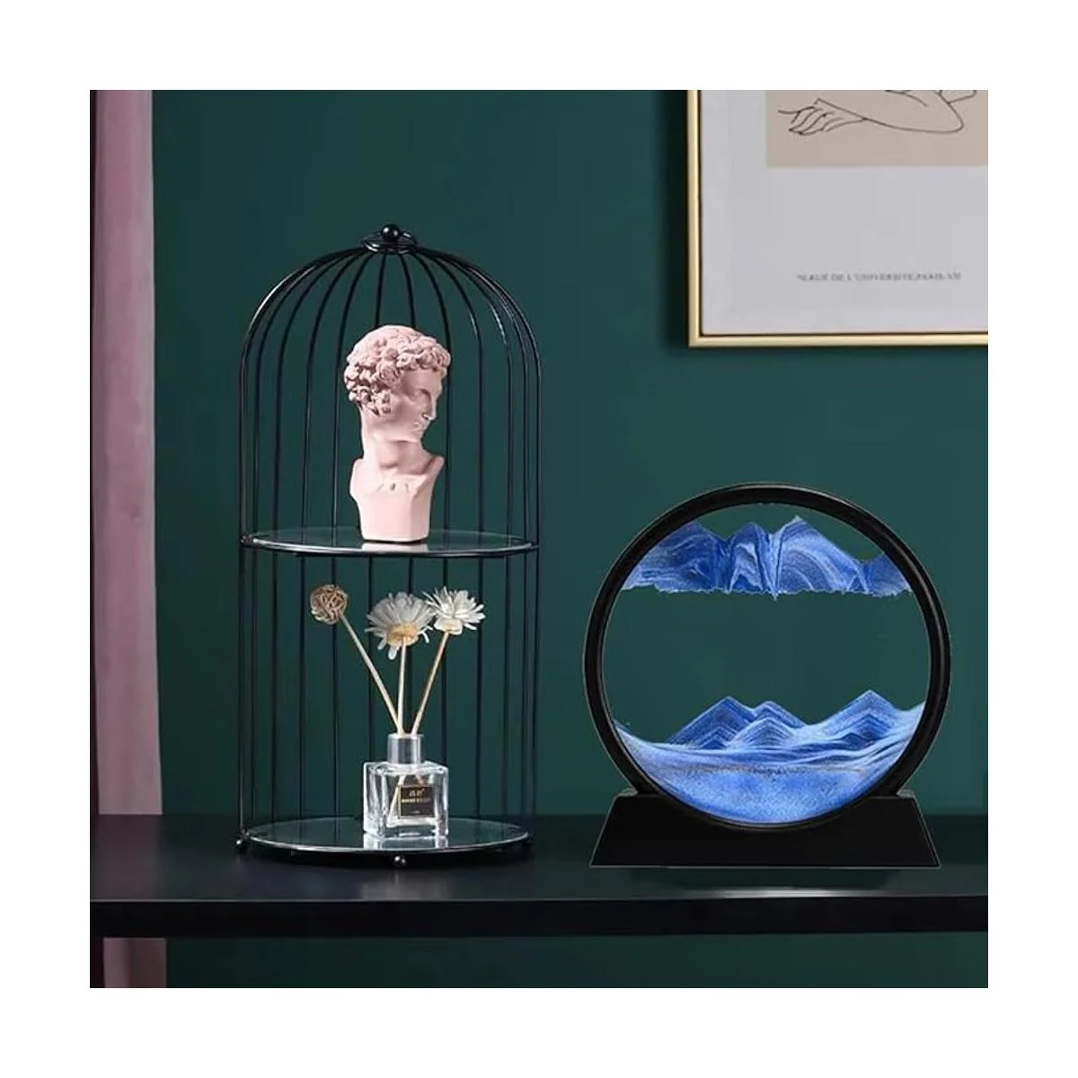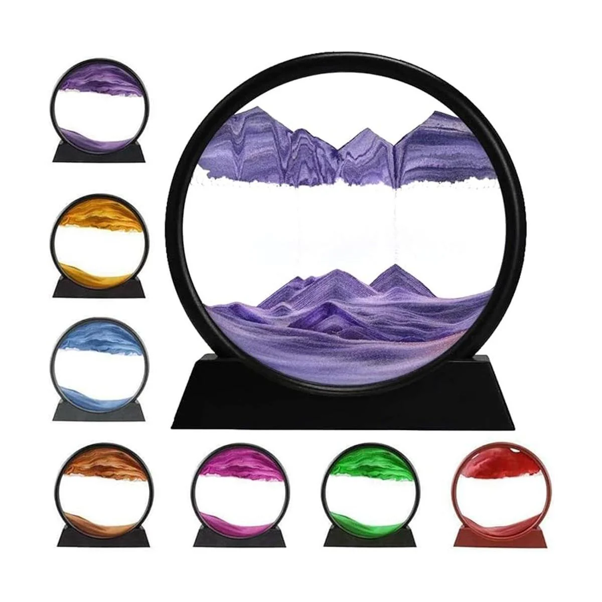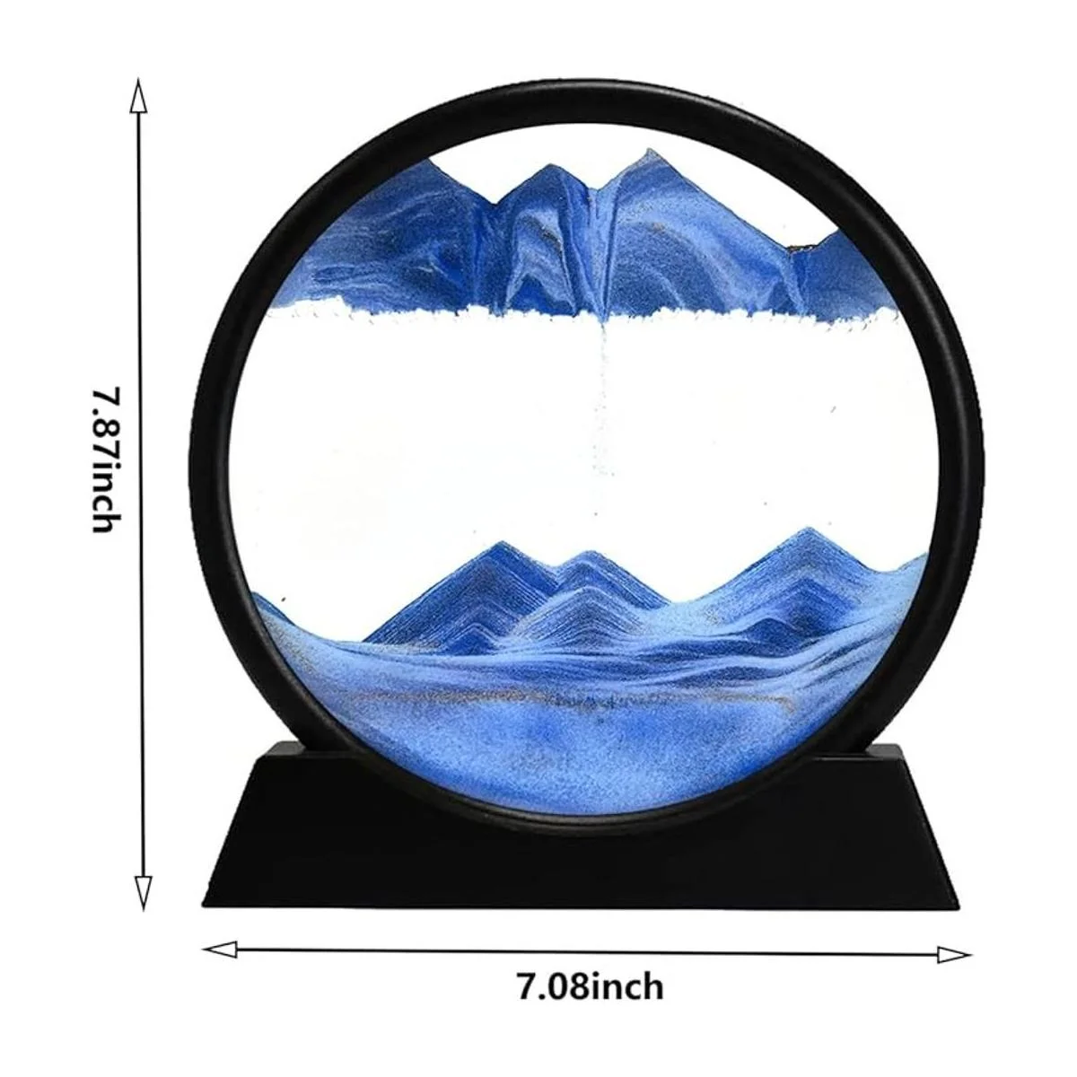 ANBOER Marco redondo de vidrio con arena líquida en movimiento dinámico 3D, paisaje de arena relajante para escritorio, hogar, oficina trabajo y decoración