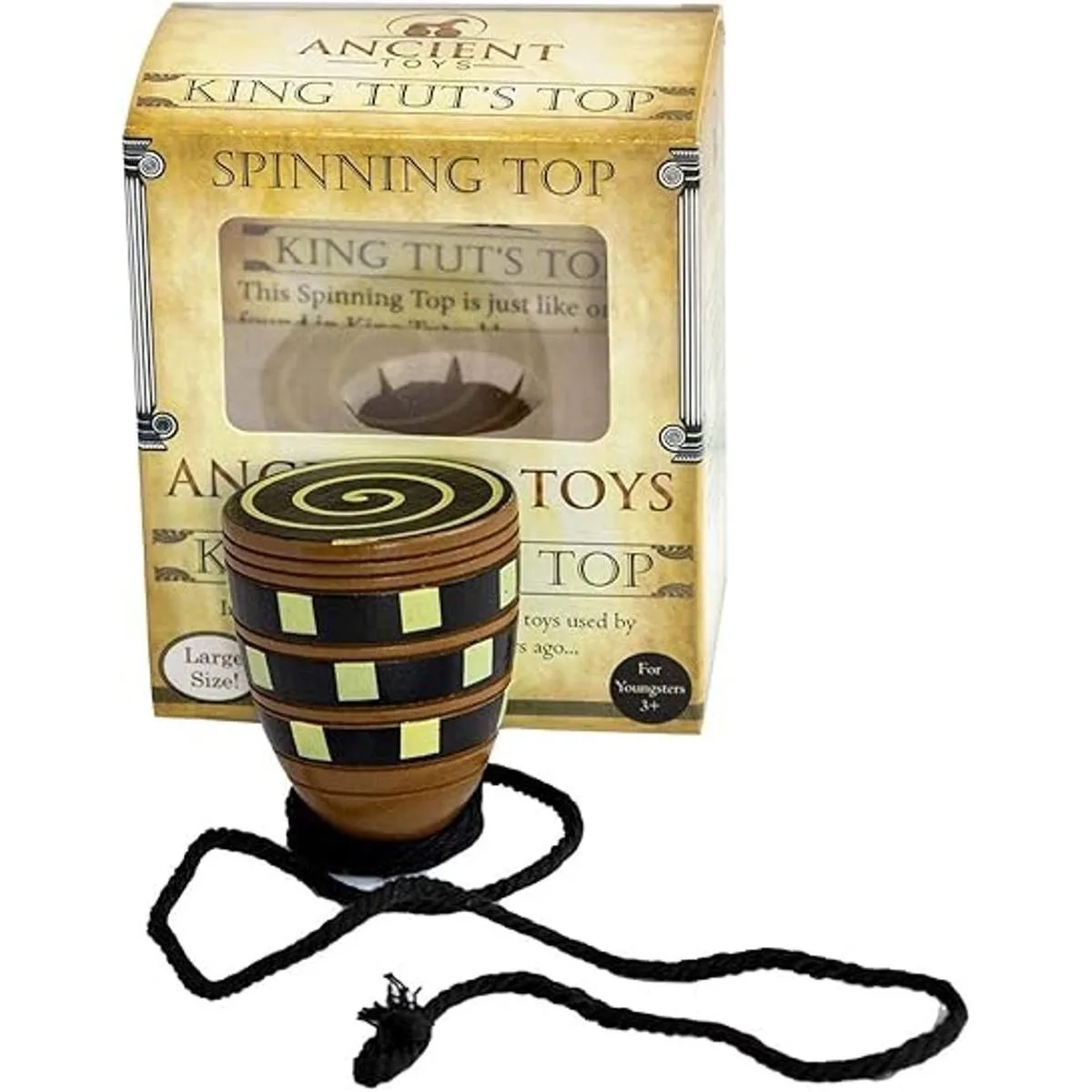 Ancient Toys Parte superior giratoria de madera Parte superior de King TUT La manera perfecta de introducir la historia con los juguetes utilizados por niños hace miles de años. Empaquetado en una atractiva caja de regalo con cuerda giratoria