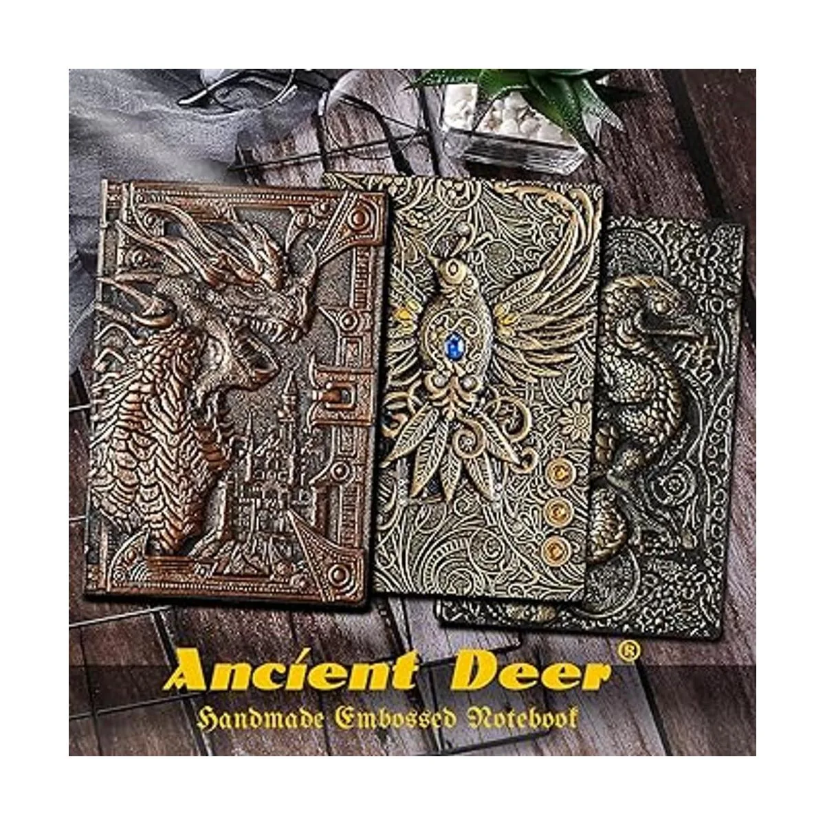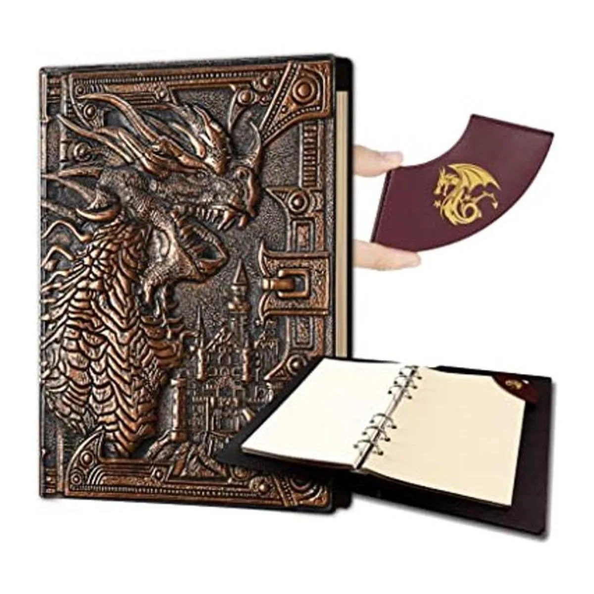 AncientDeer Cuaderno DND, cuaderno único de 400 páginas con dragones 3D, carpeta recargable de 6 anillos y marcador para mazmorras y dragones, accesorios de dados DD, juegos de rol, grandes regalos DND