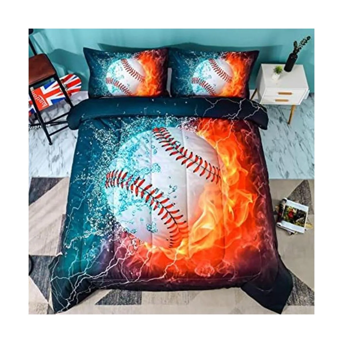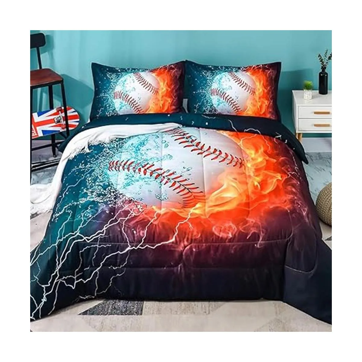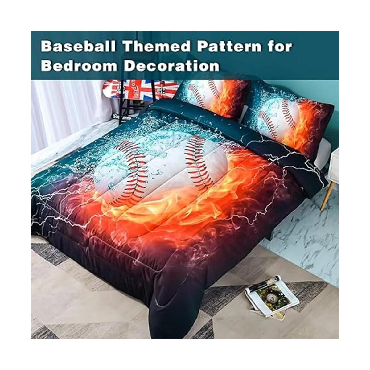 Edredón de béisbol individual: nuestro juego de edredón viene con 1 edredón y 1 funda de almohada. El edredón puede decorar el dormitorio de forma más vívida con el patrón temático de béisbol. Ya no necesitas funda adicional, lo que puede ahorrar tiempo para cambiar las fundas de cama. Puedes obtener cómodamente un juego de cama en un solo paquete en lugar de comprar cada artículo por separado, lo que cuesta más dinero.