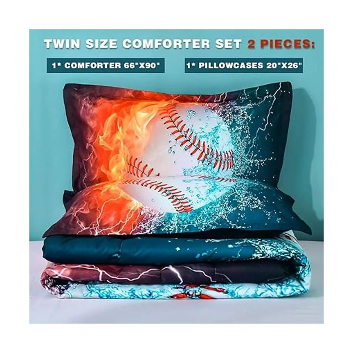 Andency Edredón de béisbol 3D individual 66 x 90 pulgadas, 2 piezas 1 edredón de béisbol, 1 funda de almohada, juego de ropa de cama de béisbol de microfibra deportiva para niños y niños