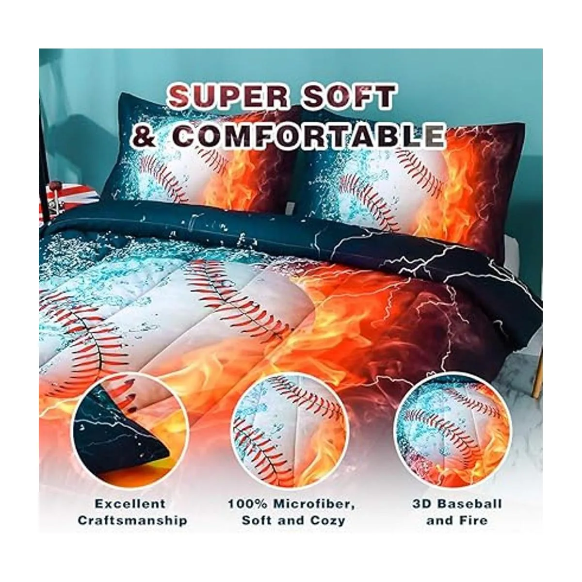 Tela suave y cómoda: el edredón de béisbol está hecho de microfibra de alta calidad, que es más suave que otros materiales. El juego de edredón de béisbol 3D está diseñado para los fanáticos del béisbol, lo que puede traer a tu hijo un sueño dulce y profundo.