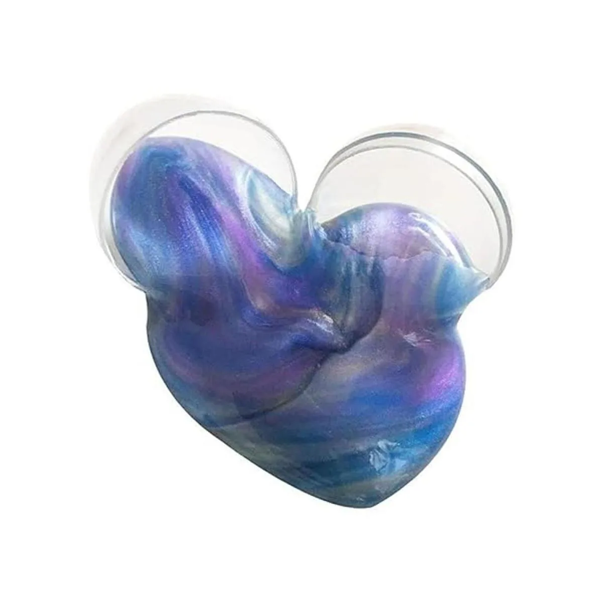 Este limo colorido es una mezcla de azu, dorado y morado, es suave, elástico, no se pega a las manos, la ropa, las paredes o alfombras, muy fácil de limpiar.