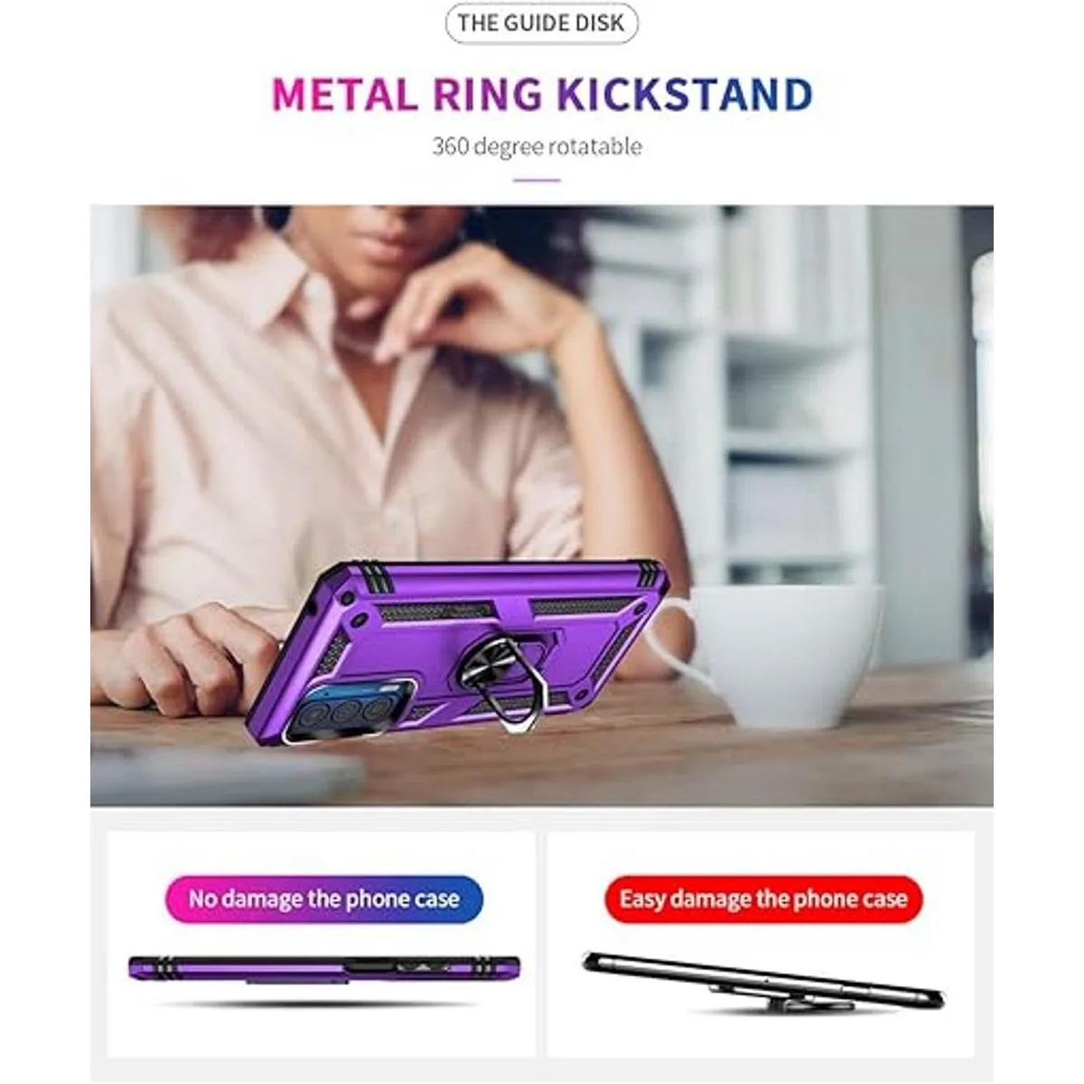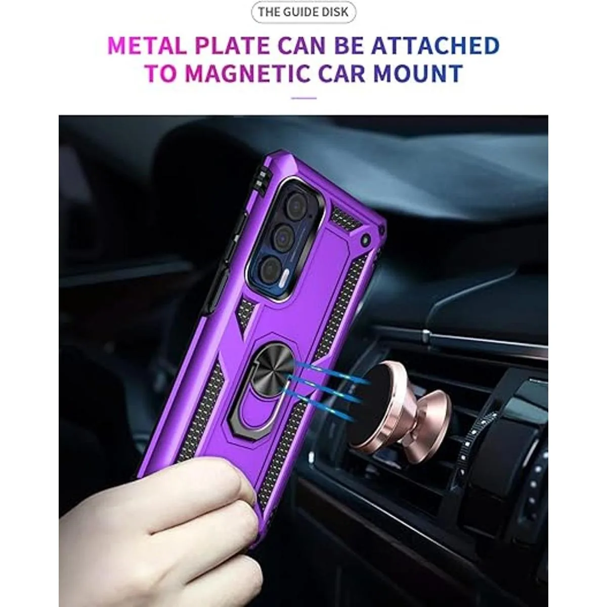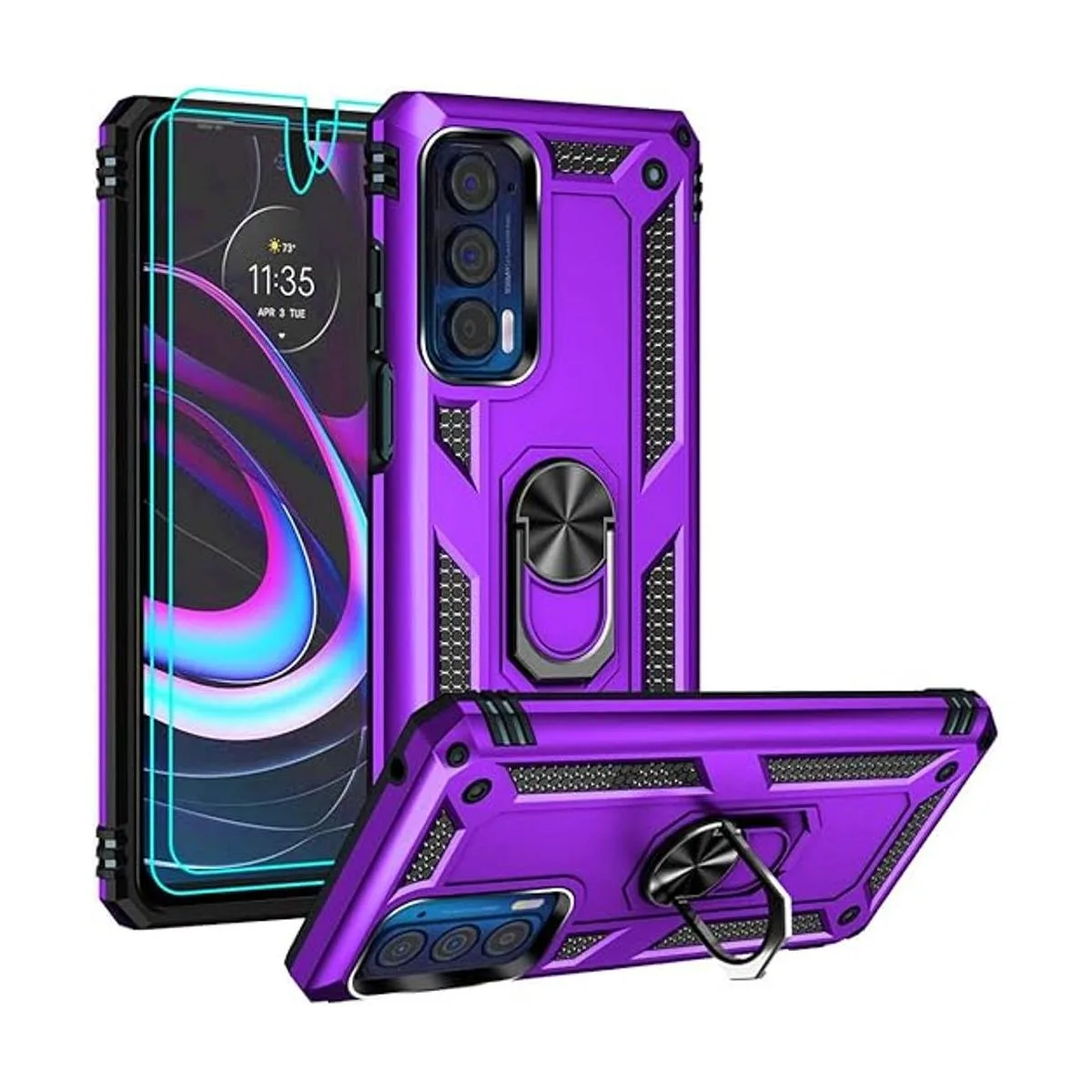 Androgate Funda compatible con Motorola Moto Edge 2021, funda Moto Edge 5G UW con protectores de pantalla HD, soporte de anillo de metal de grado militar, funda probada a prueba de caídas de 15 pies, color morado