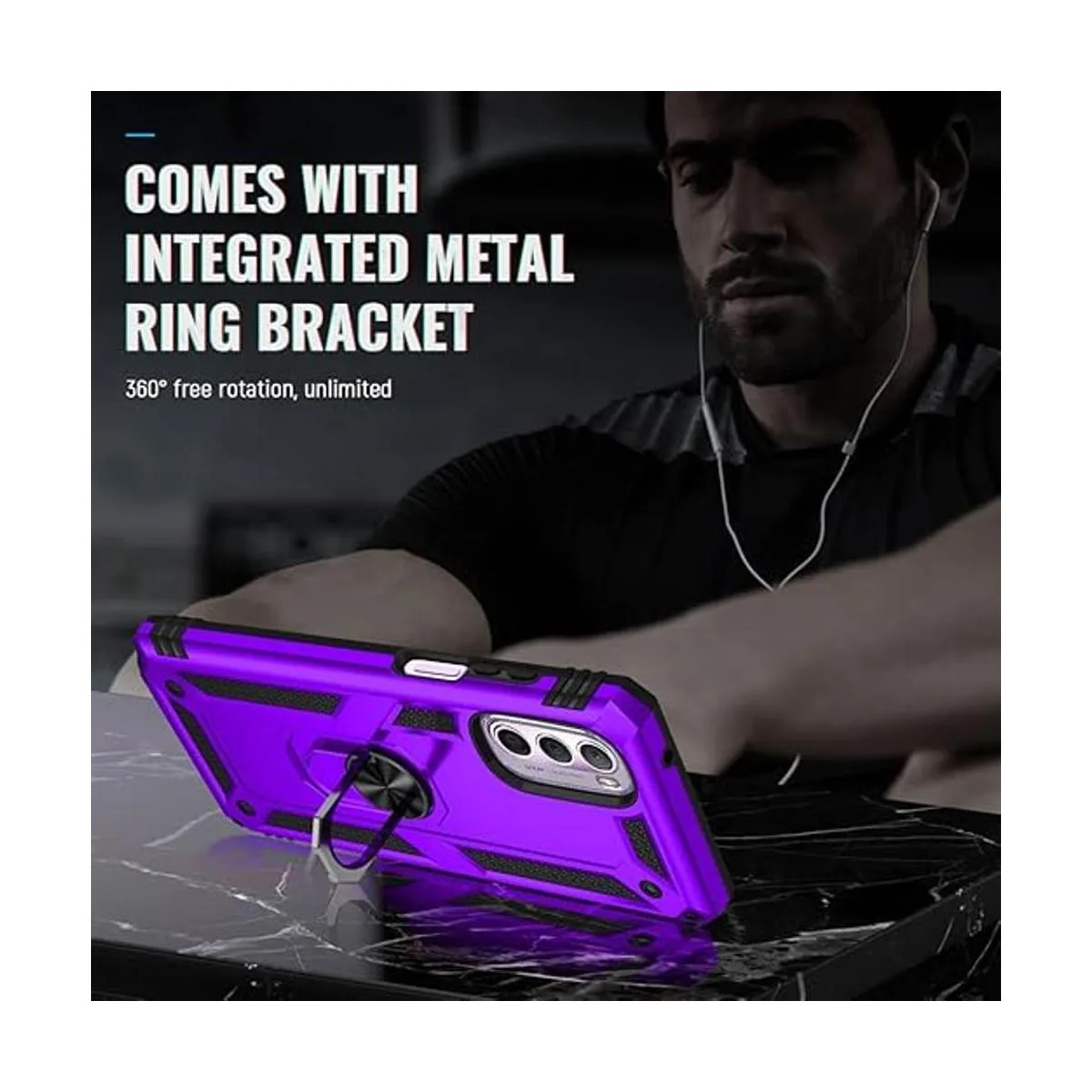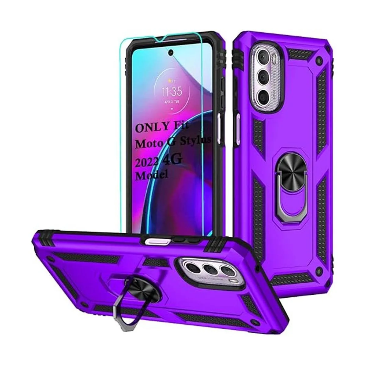 Androgate Funda compatible con Motorola Moto G Stylus 2022 4G con protectores de pantalla HD, anillo de metal de grado militar, 15 pies, prueba de caídas, a prueba de golpes, para Moto G Stylus 4G 2022, color morado