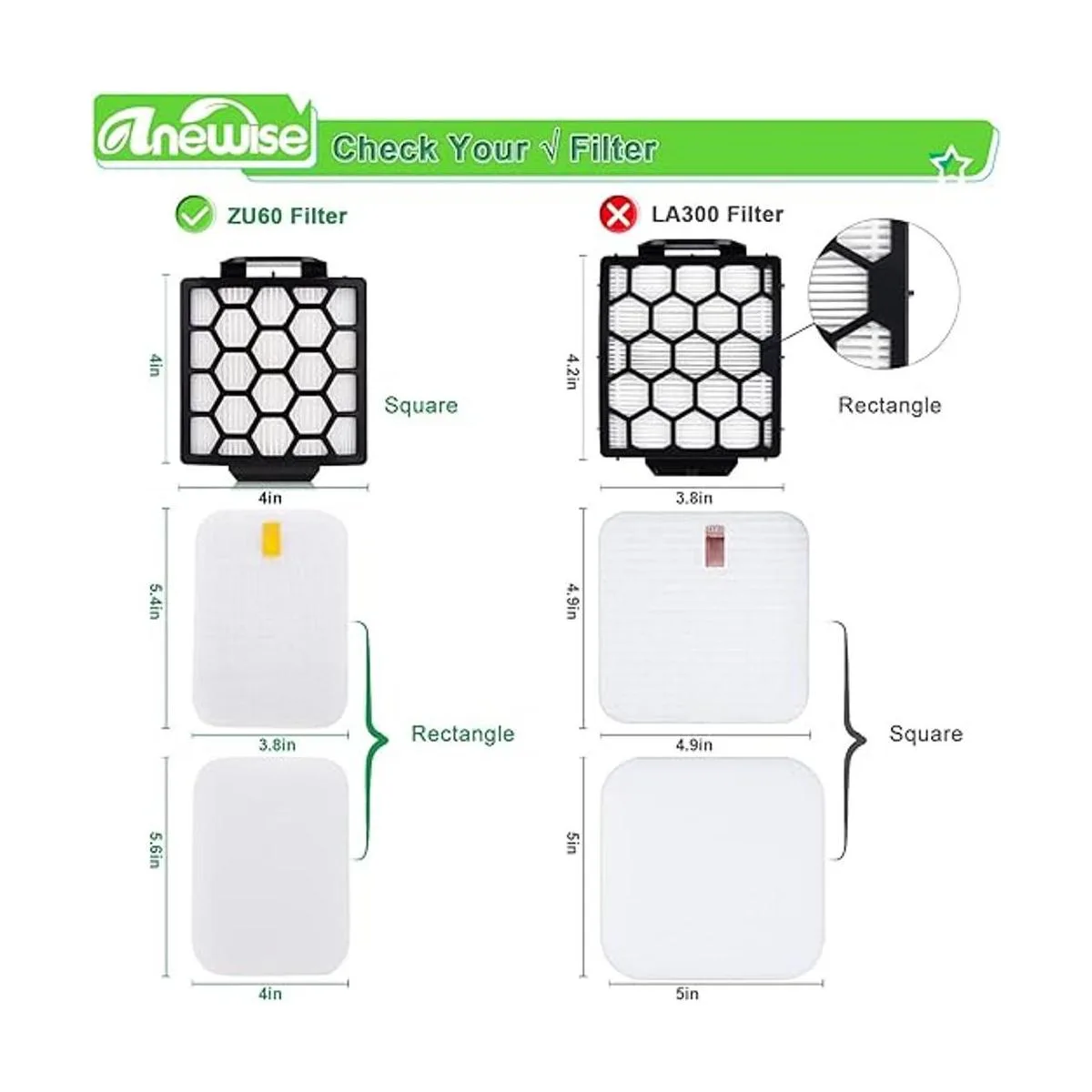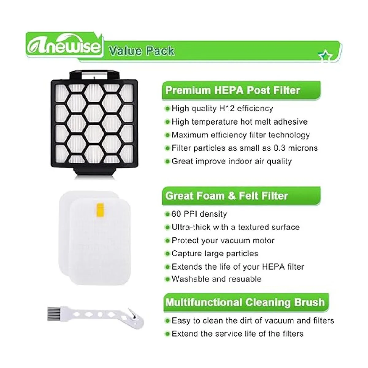 Anewise Filtro de repuesto para Shark Navigator ZeroM Pet Pro ZU60 ZU62 ZU62C NV150 NV150C NV151 NV251 Rotator Pet Plus NV255 Aspiradora vertical, 2 HEPA 6 filtros de espuma y fieltro, en comparación con la parte 1238FT60 y 1239FT6FT6FT6FT6 0 0