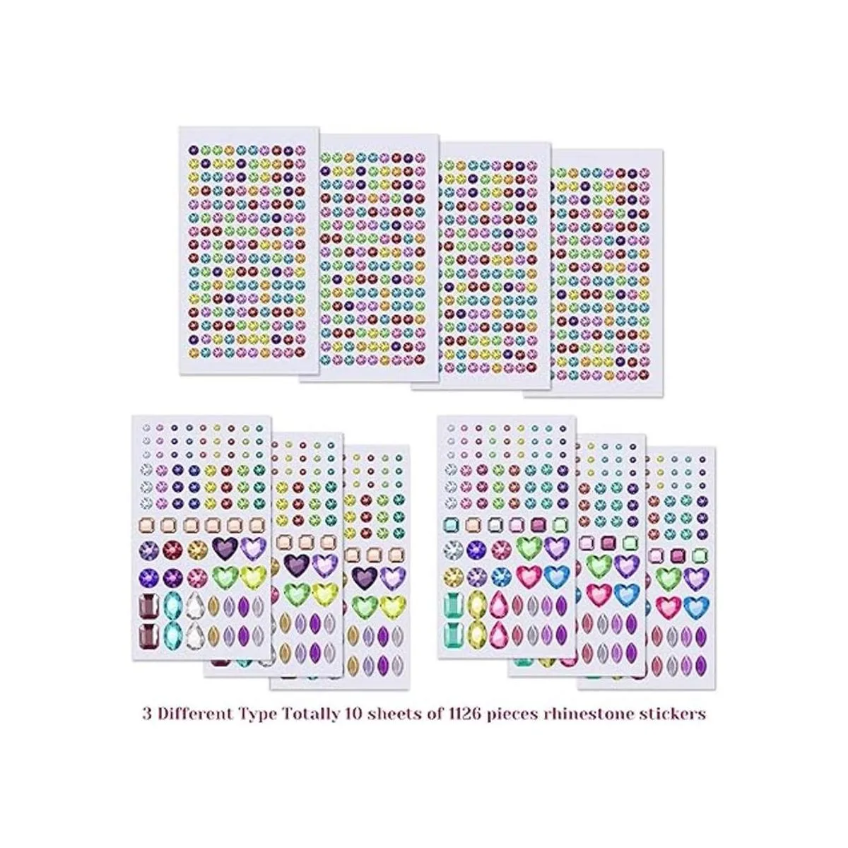 Anezus 1126 calcomanías de diamantes de imitación autoadhesivas, joyas de cristal, para uñas, cuerpo, maquillaje, festivales, varios tamaños y formas, 10 hojas