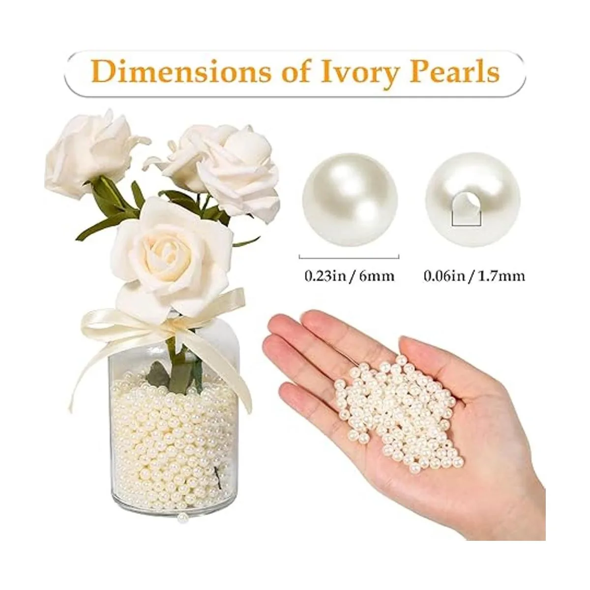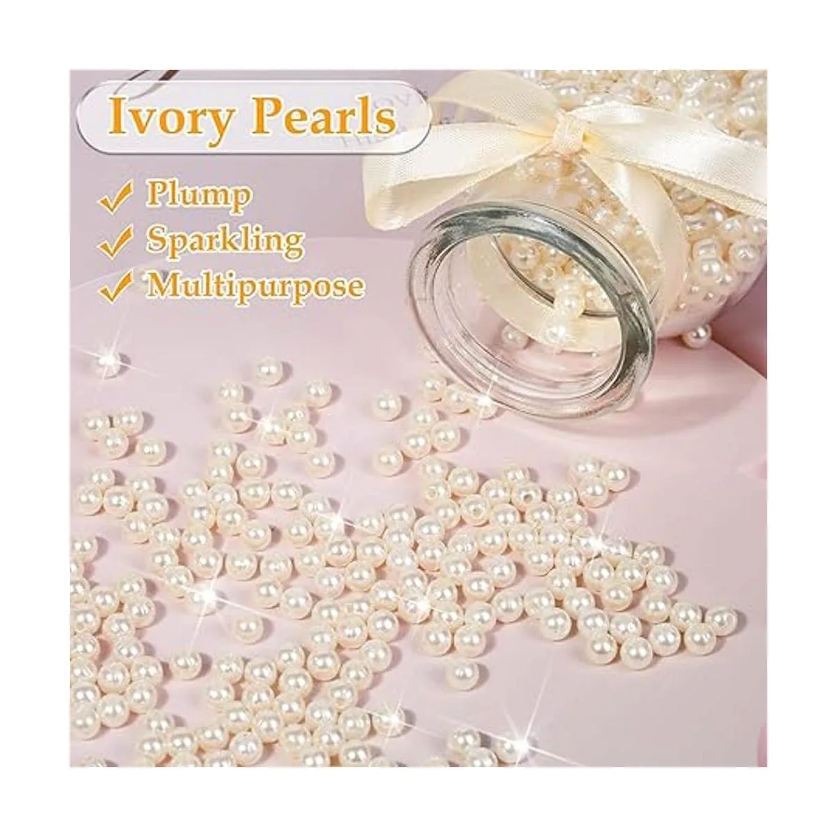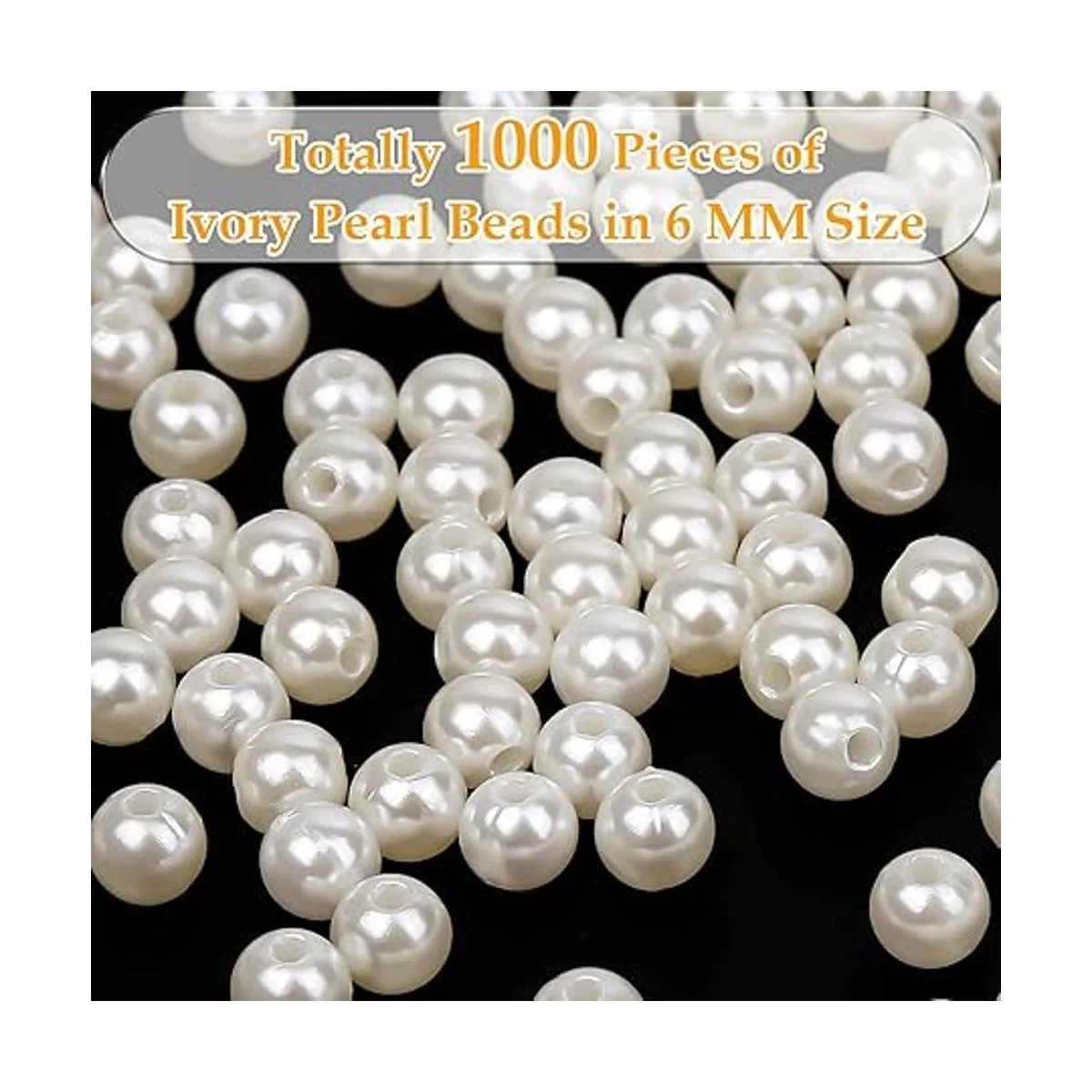 Anezus Cuentas de perlas para manualidades, 1000 perlas falsas de color marfil, pequeñas cuentas de perlas cosidas de 0.236 in con agujeros para hacer joyas, pulseras, collares, pelos, manualidades, decoración y relleno de jarrón