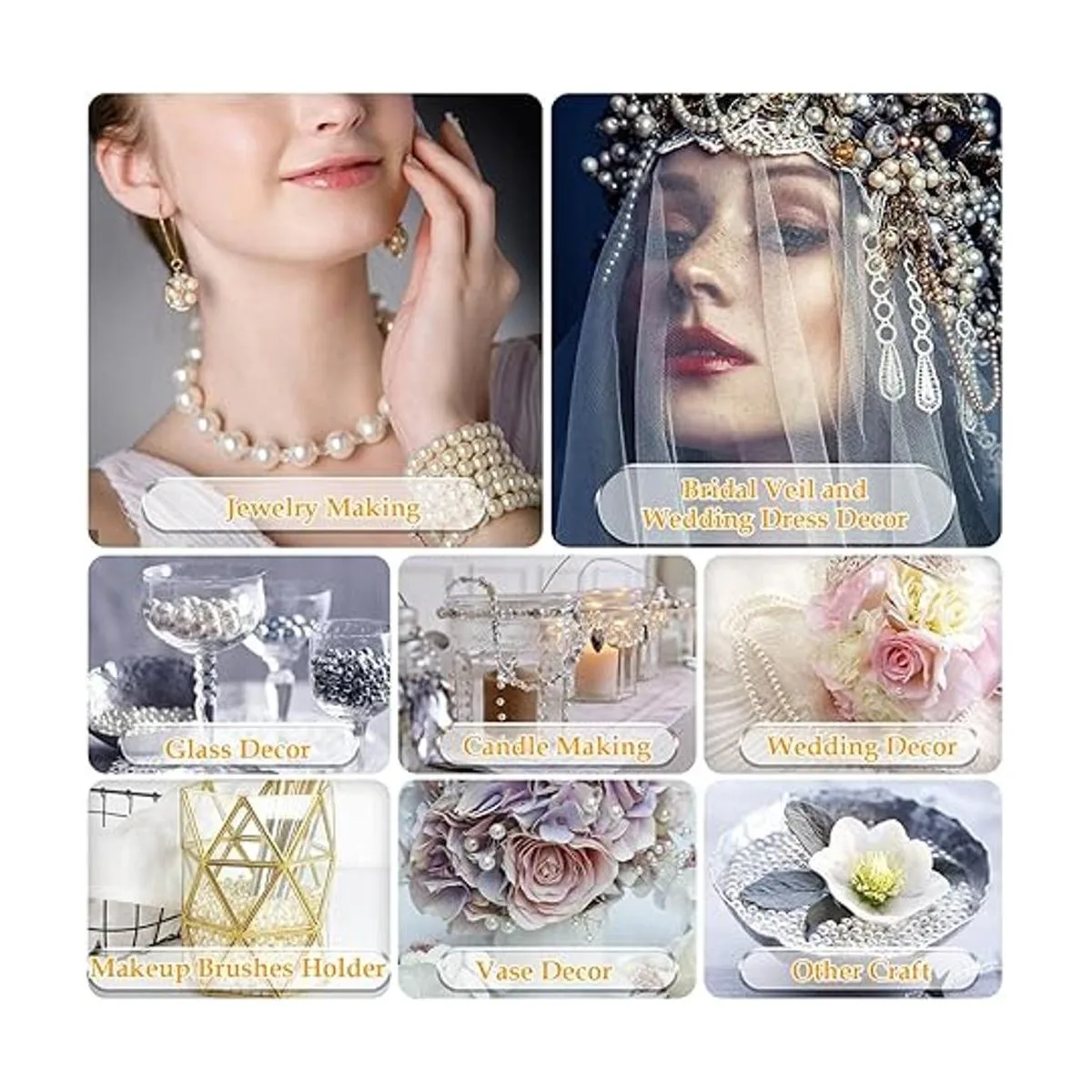 Múltiples usos: las cuentas de perlas marfil son ideales para hacer joyas, relleno de jarrón, soporte de pinceles, decoración floral, decoración de velas y otras manualidades. Las cuentas de perlas cosidas también son ampliamente utilizadas en todo tipo de proyectos de costura, decoraciones de boda, bolsos, bolsos, etc