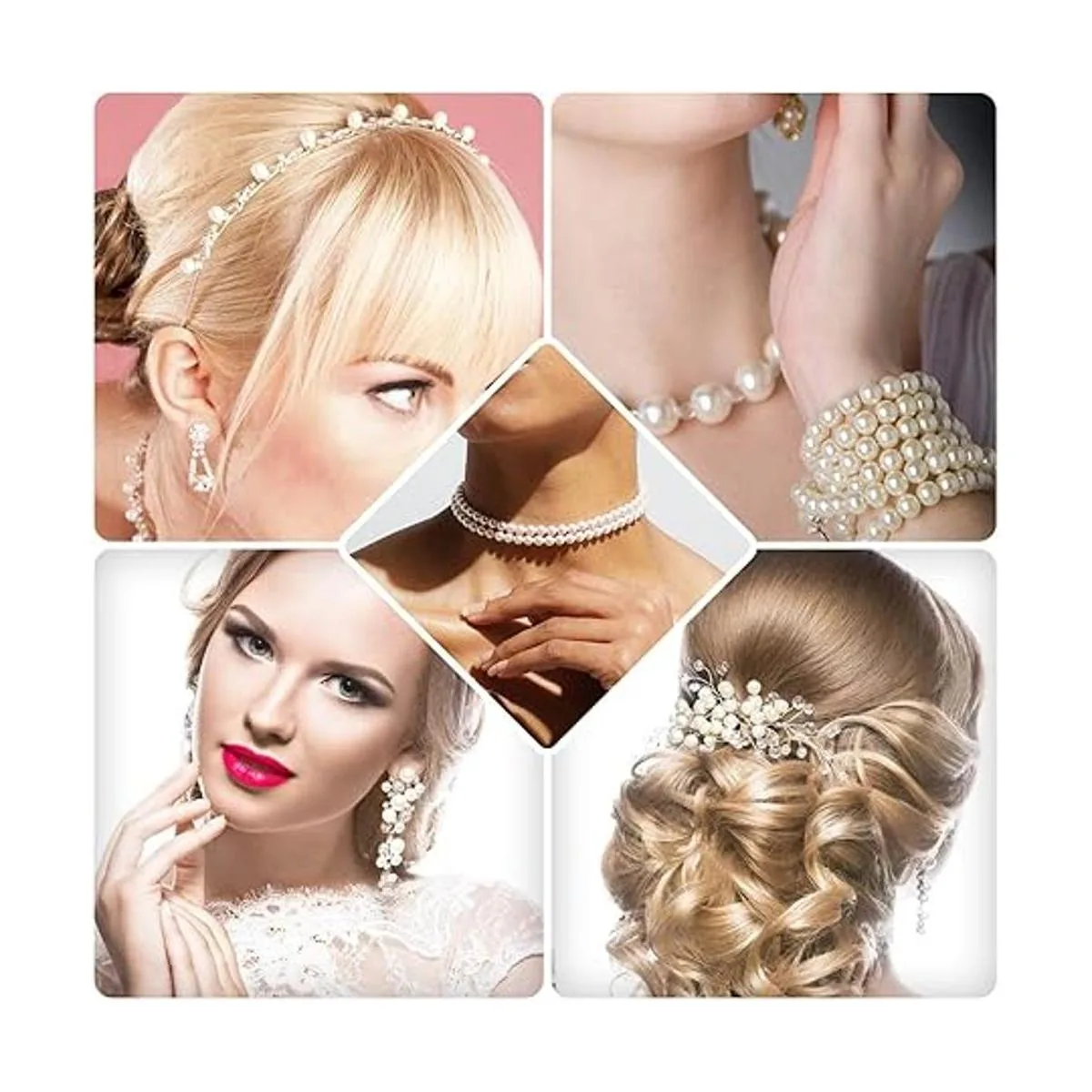 Mini perlas para decoración: las cuentas de perlas para el pelo tienen 0.236 in de diámetro con agujero de 0.067 in de diámetro. Las pequeñas cuentas de perlas son adecuadas para coser en tela y mejorar proyectos de bordado y encaje