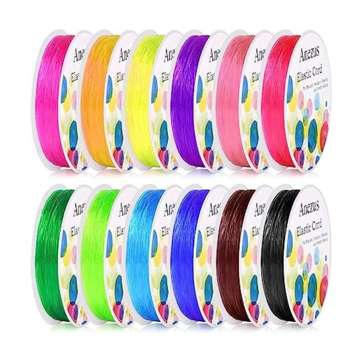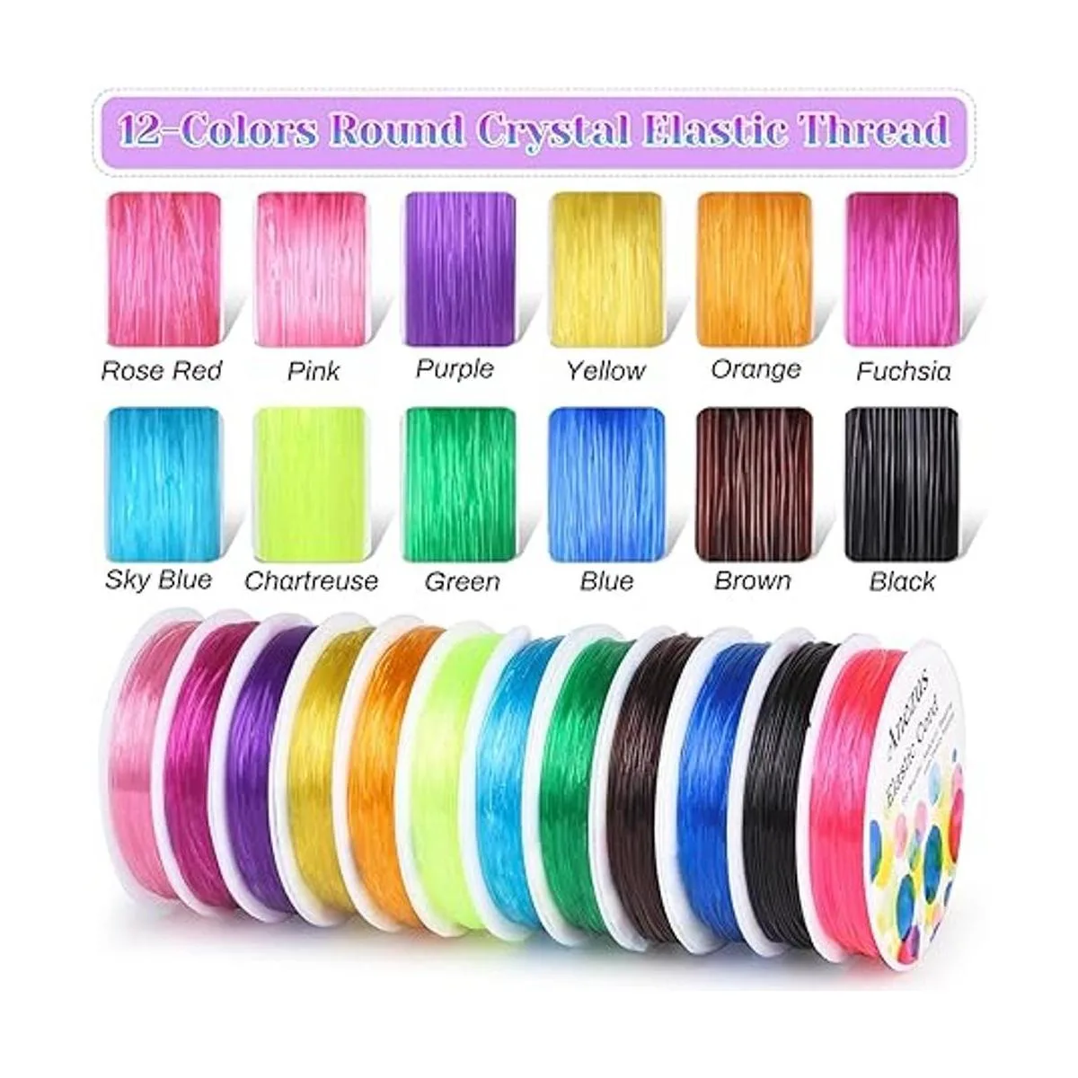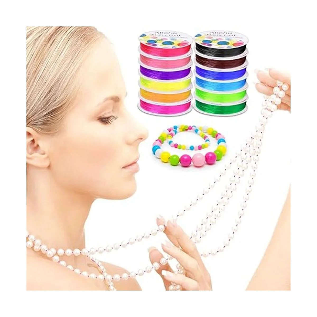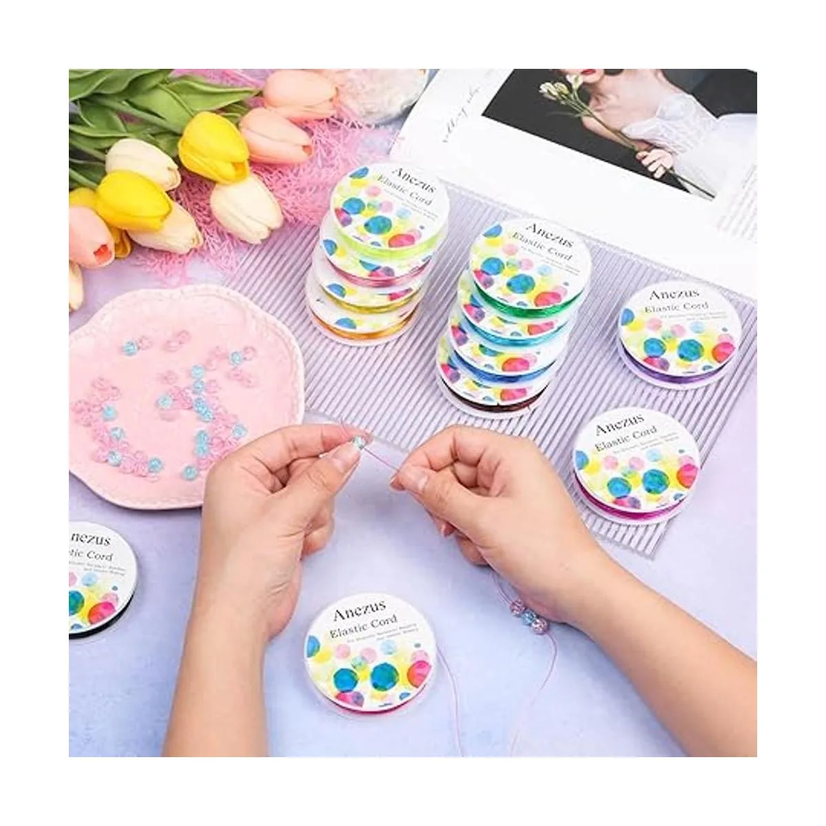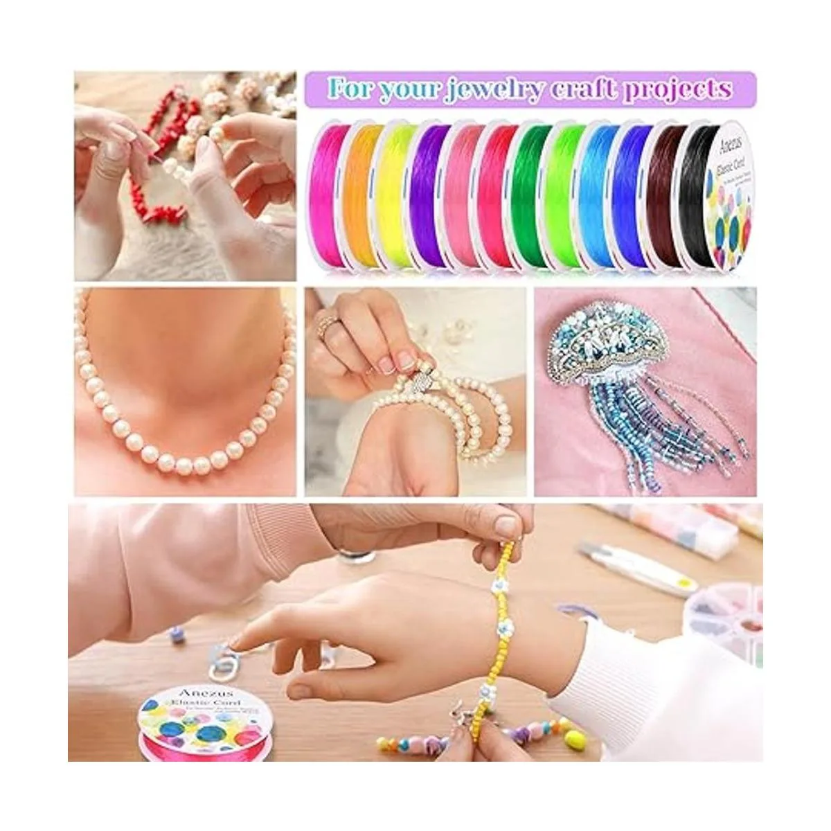 Anezus Cuerda elástica para pulseras, 12 rollos de alambre de cuentas de cristal para hacer joyas, cordón mágico elástico para cuentas, pulseras y fabricación de joyas