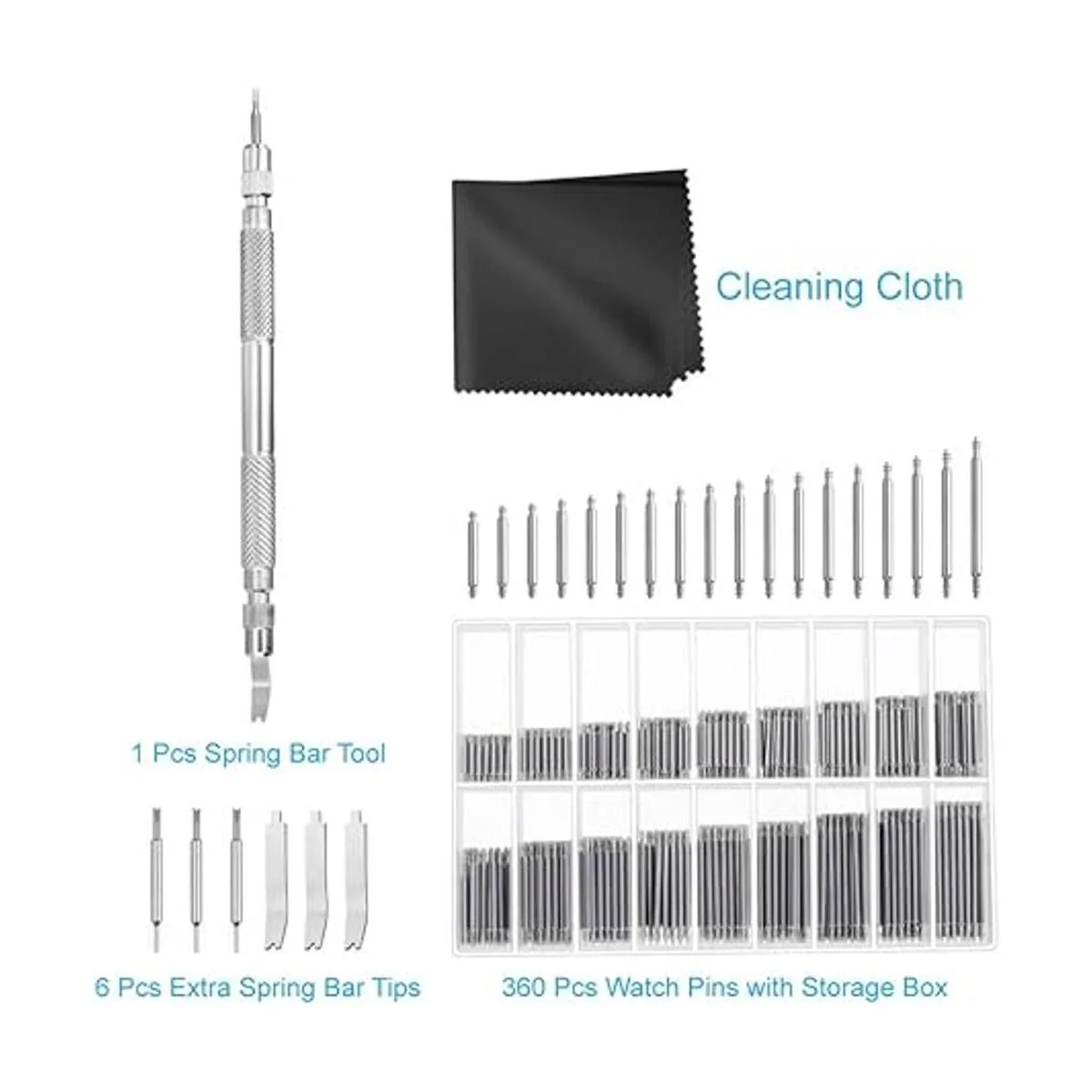 Anezus Kit de removedor de eslabones de reloj con barra de resorte, herramienta de banda de reloj y 360 piezas de correa de reloj para reparación de reloj y eliminación de la correa de reloj